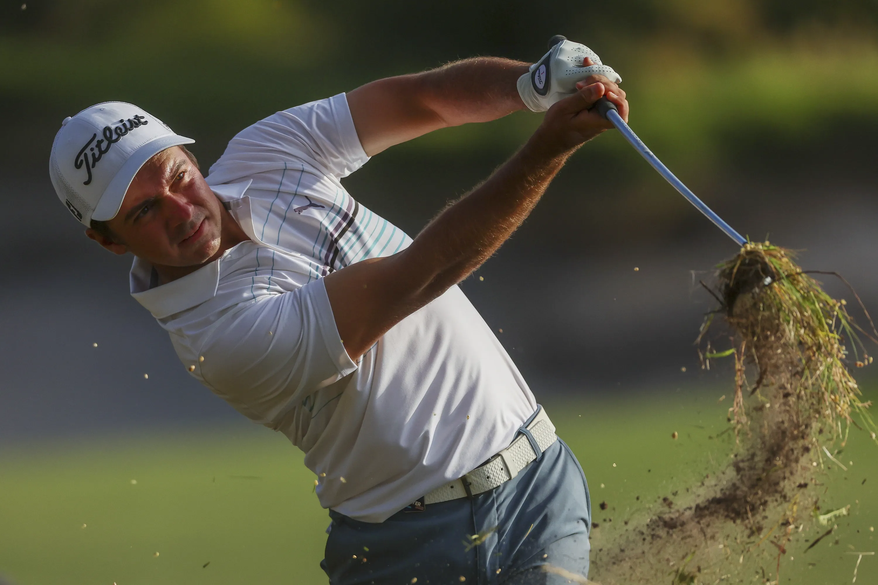 Australia's David Micheluzzi plays out of the rough on the 18th hole during the Australian Open golf championship at Victoria golf course in Melbourne, Australia, Saturday, December 3, 2022. (Photo by Asanka Brendon Ratnayake/AP Photo)