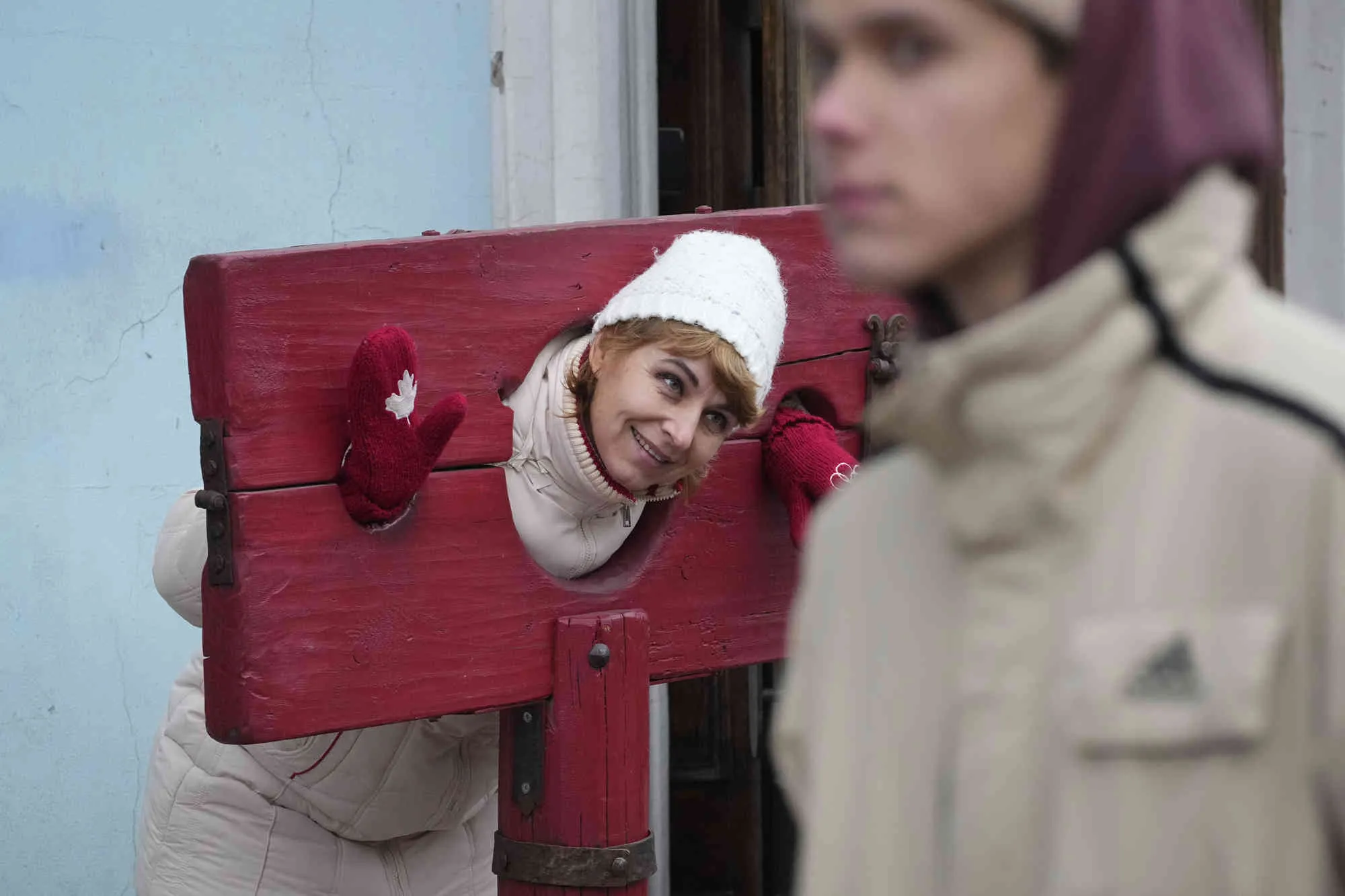 A woman poses for photo at the Museum of Torture in St. Petersburg, Russia, Friday, November 25, 2022. (Photo by Dmitri Lovetsky/AP Photo)