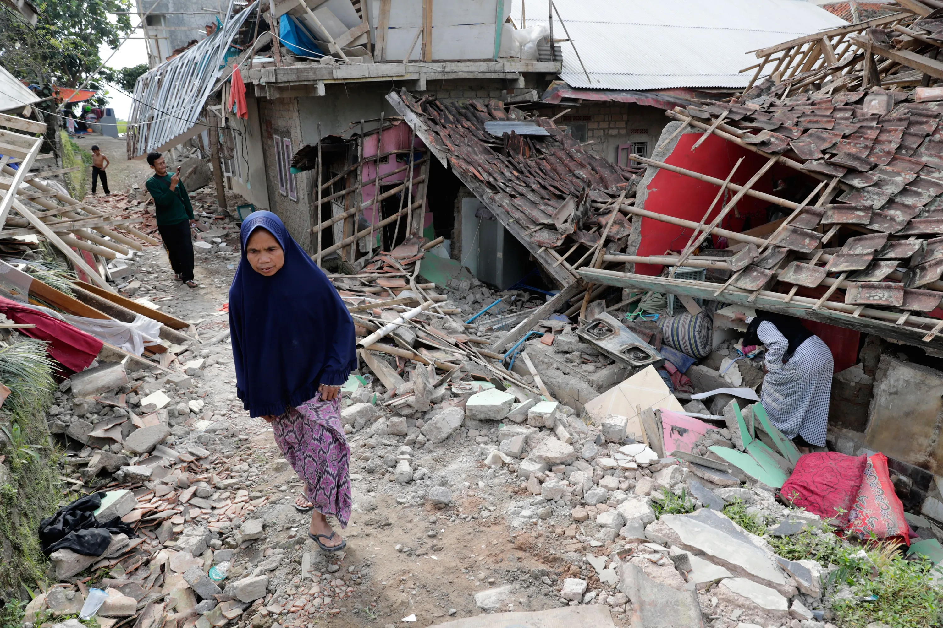 Residents walk and search for their belongings at their collapsed house caused by a 5.6 magnitude earthquake, in Cianjur, Indonesia, 23 November 2022. The 5.6 earthquake hit the southwest of the Cianjur District in West Java Province on 21 November, killing 103, according to the Indonesia's National Disaster Management Authority. (Photo by Adi Weda/EPA/EFE/Rex Features/Shutterstock)