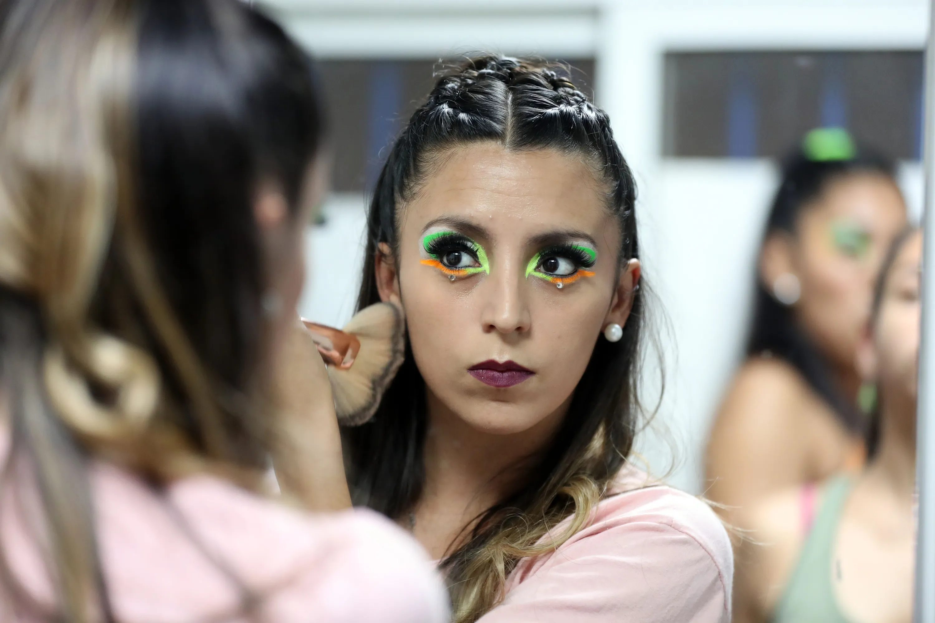 The performers prepare for the show. Fontana, a travelling water circus produced by Cirque Du Liban. Festival City, Dubai on October 26, 2022. (Photo by Chris Whiteoak/The National)
