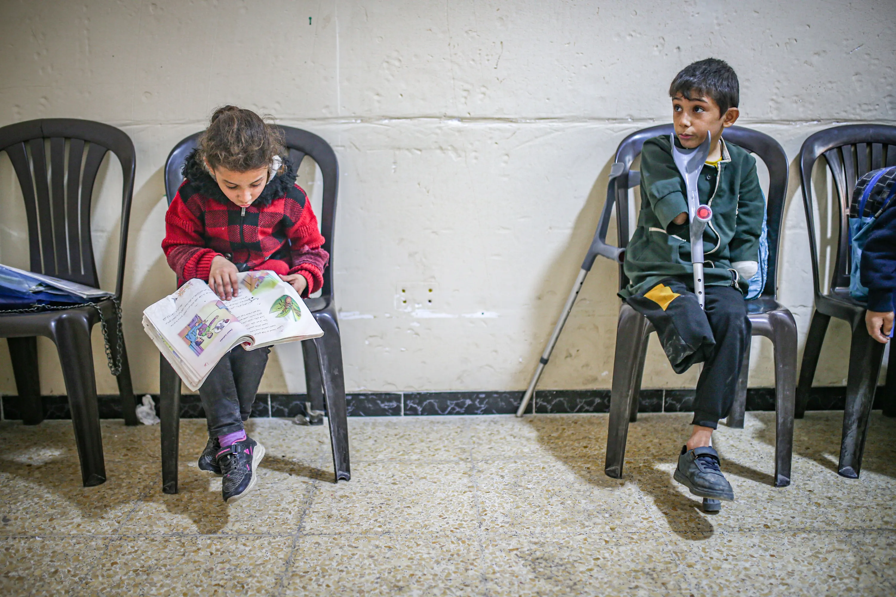Syrian amputee children are seen at a class as they continue to receive education realize their dreams in Idlib, Syria on November 19, 2022. Syrian children, who lost their limbs as a result of the 11-year air and ground attacks of Assad Regime and Russia, do not give up on their dreams left unfinished by the war. Syria is at the top of the list of countries where child rights violations are most common in the world. Syrian children were the ones who bore the most unforgettable and heavy traces of the attacks carried out by the Assad regime and Russia. The Syrian children who was amputated in Idlib does not give up his dreams of going to school and becoming a doctor, teacher and engineer. (Photo by Muhammed Said/Anadolu Agency via Getty Images)