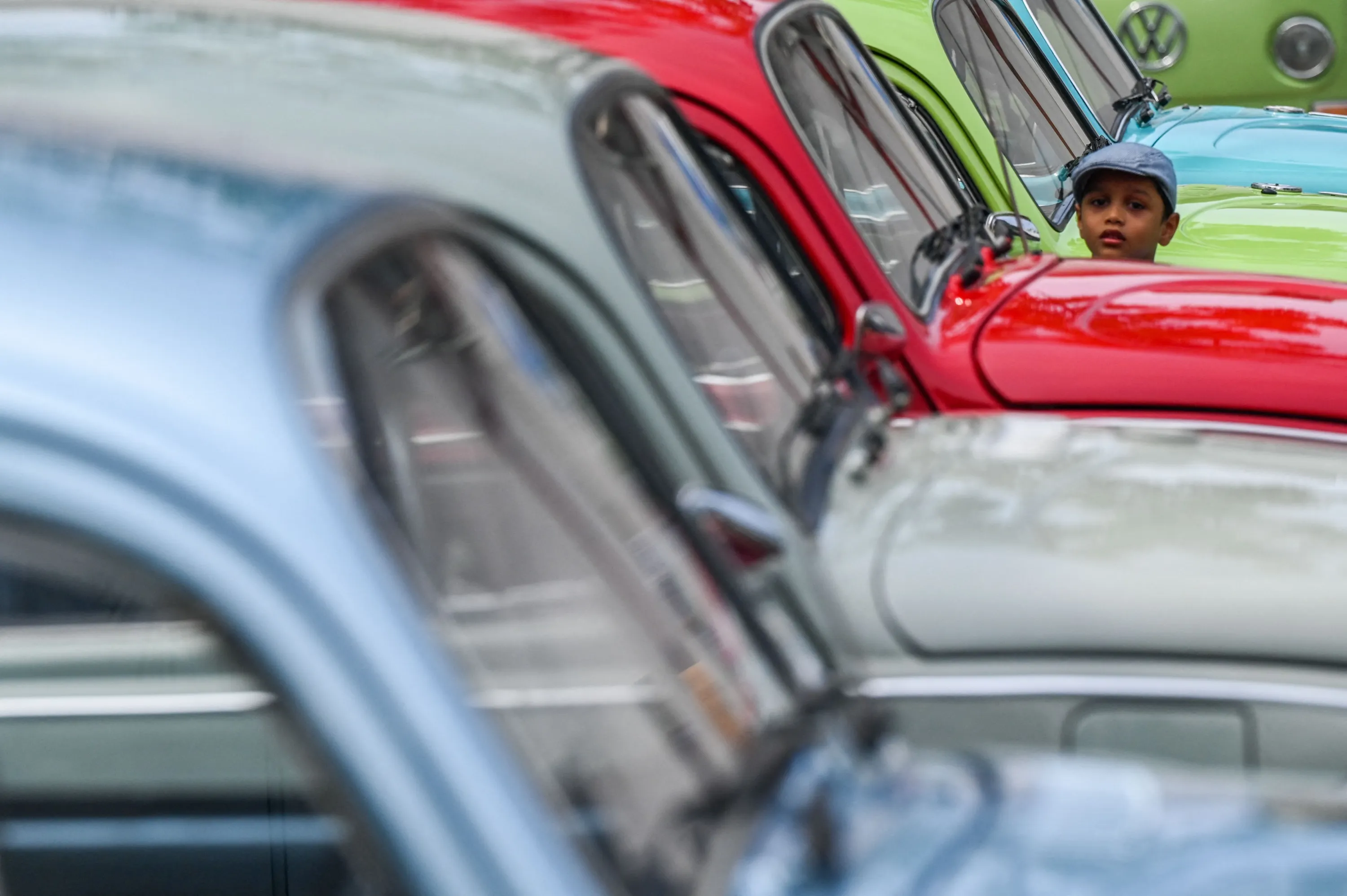 Volkswagen Beetle Owners' Club of Sri Lanka exhibit members' cars during an event in Colombo on November 20, 2022. (Photo by Ishara S. Kodikara/AFP Photo)