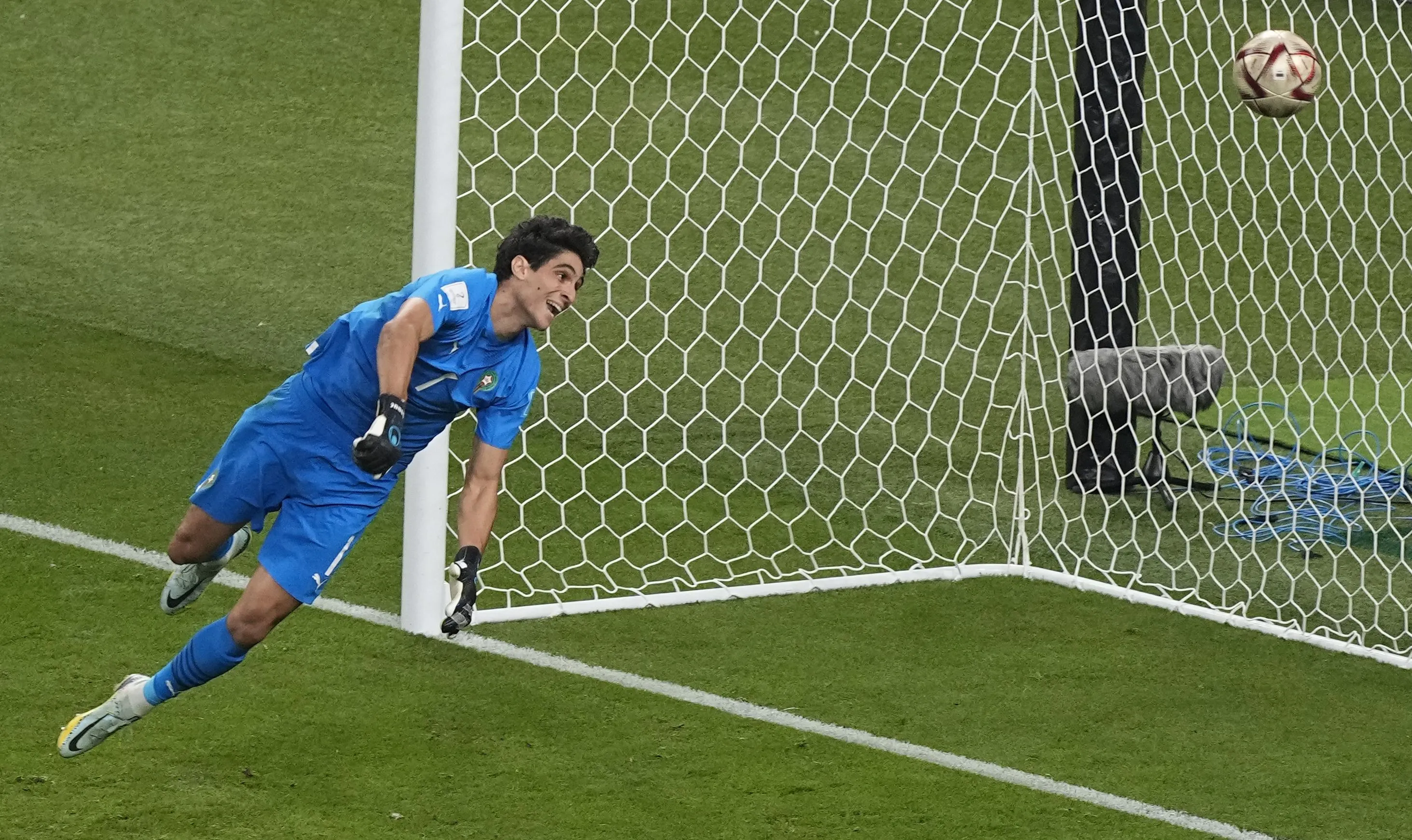 Morocco's goalkeeper Yassine Bounou fails to save the goal from Croatia's Mislav Orsic during the World Cup third-place playoff soccer match between Croatia and Morocco at Khalifa International Stadium in Doha, Qatar, Saturday, December 17, 2022. (Photo by Martin Meissner/AP Photo)