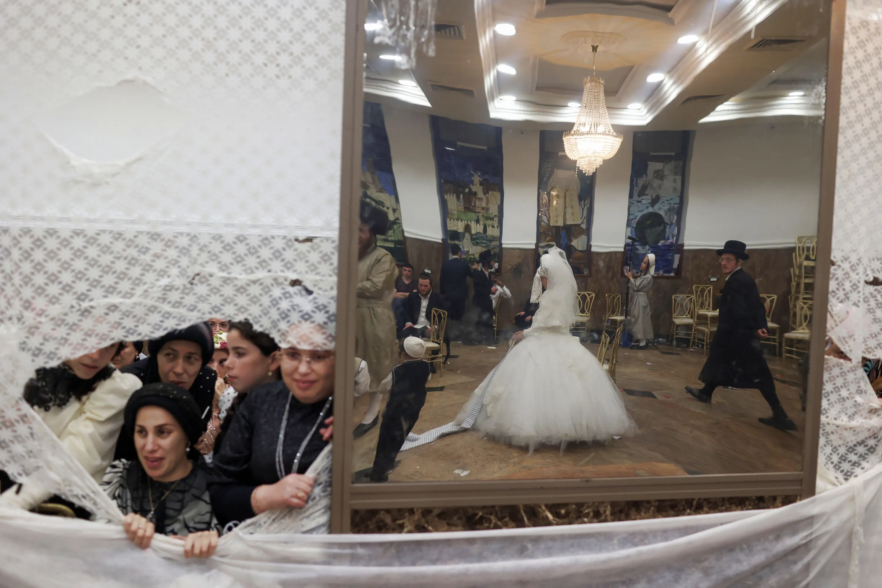 Ultra-Orthodox Jewish women look on from the women section as groom Moshe Lev and bride Ester Krois dance during their traditional wedding ceremony in Jerusalem, Israel, 06 September 2022. (Photo by Abir Sultan/EPA/EFE)