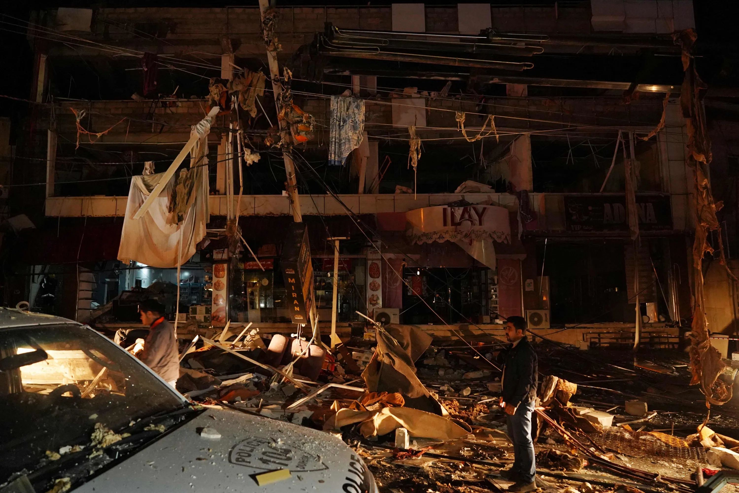 A picture shows a view of the wreckage left by a gas leak explosion at a student dormitory building in Dohuk in Iraq's autonomous Kurdistan region, early on November 22, 2022. - Five people died and 40 were injured in northern Iraq in a fire caused by a gas leak explosion at a student dormitory, authorities announced. The explosion occurred on November 21, 2022, at night when a rooftop gas tank leaked at a building housing a bakery and student accommodation in the Kurdish city of Dohuk. (Photo by Ismael Adnan/AFP Photo)