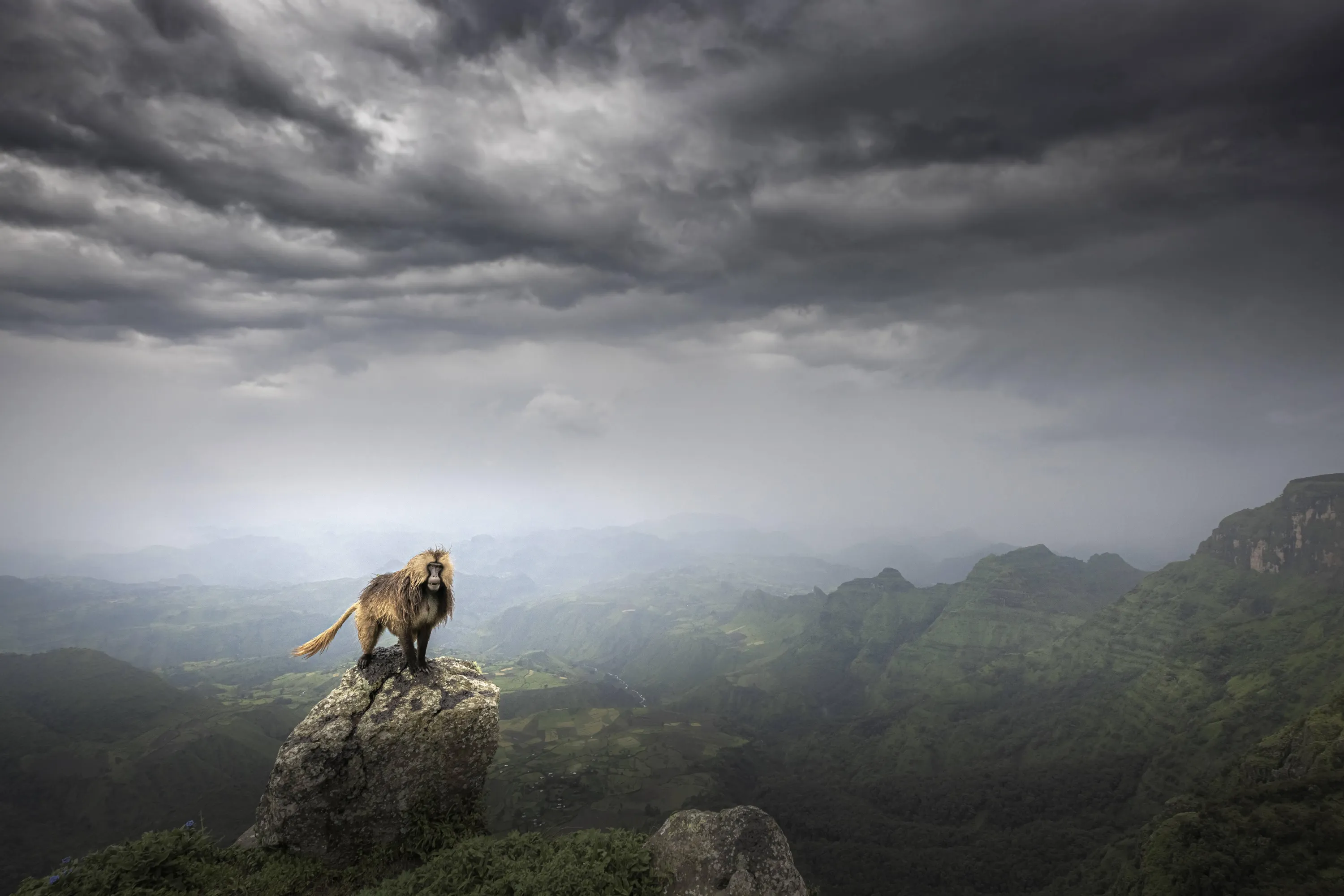 A gelada monkey on a mountain in Ethiopia in November 2022. Closely related to baboons, the monkeys live at an altitude of between 1,800 and 4,400 metres. (Photo by Marco Gaiotti/Media Drum Images)
