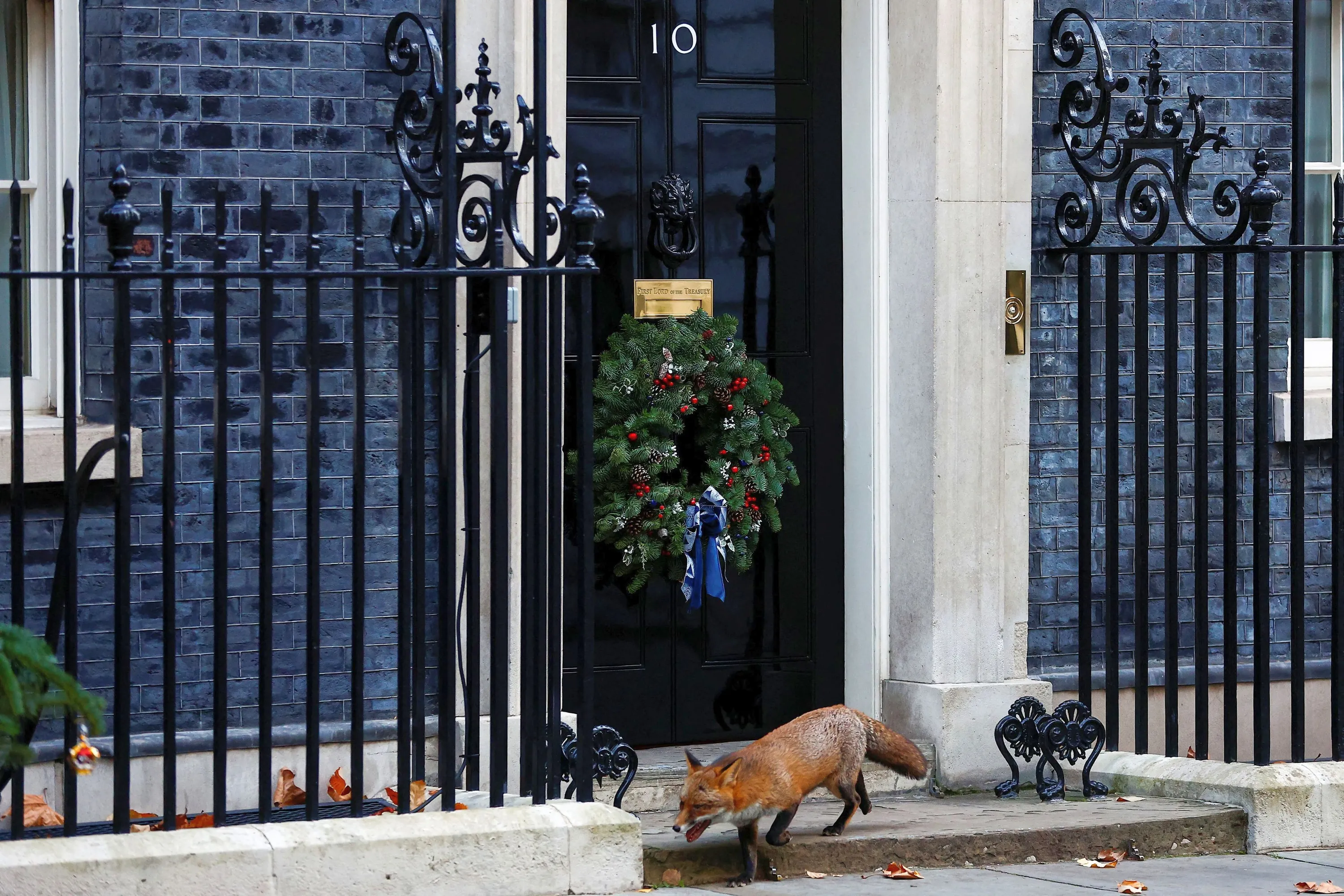 A fox walks outside Downing Street in London, Britain on December 6, 2022. (Photo by Peter Nicholls/Reuters)