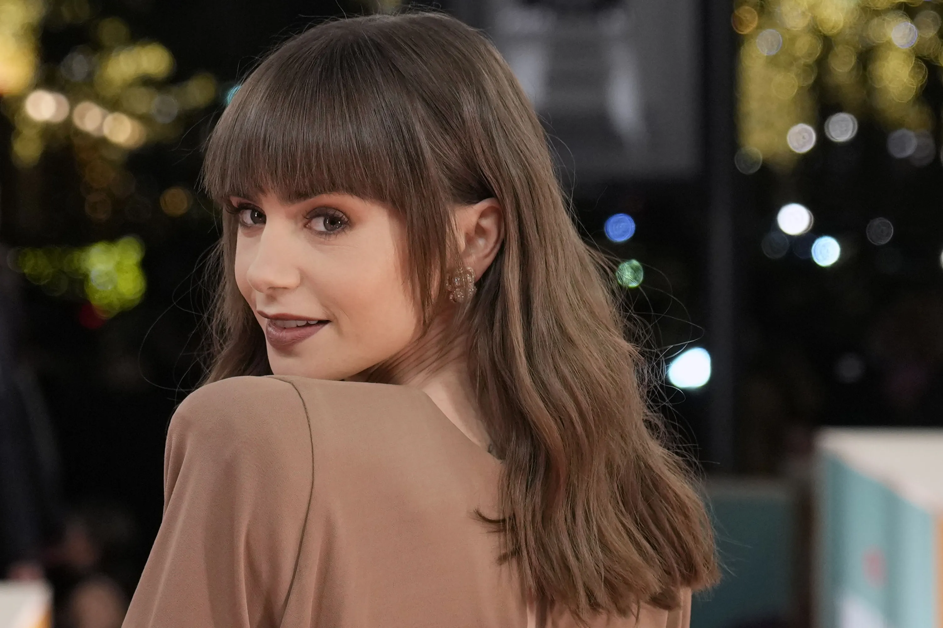 Lily Collins arrives the World Premiere of the Netflix Series “Emily in Paris” season 3, at the Theatre des Champs Elysees, in Paris, Tuesday, December 6, 2022. (Photo by Francois Mori/AP Photo)