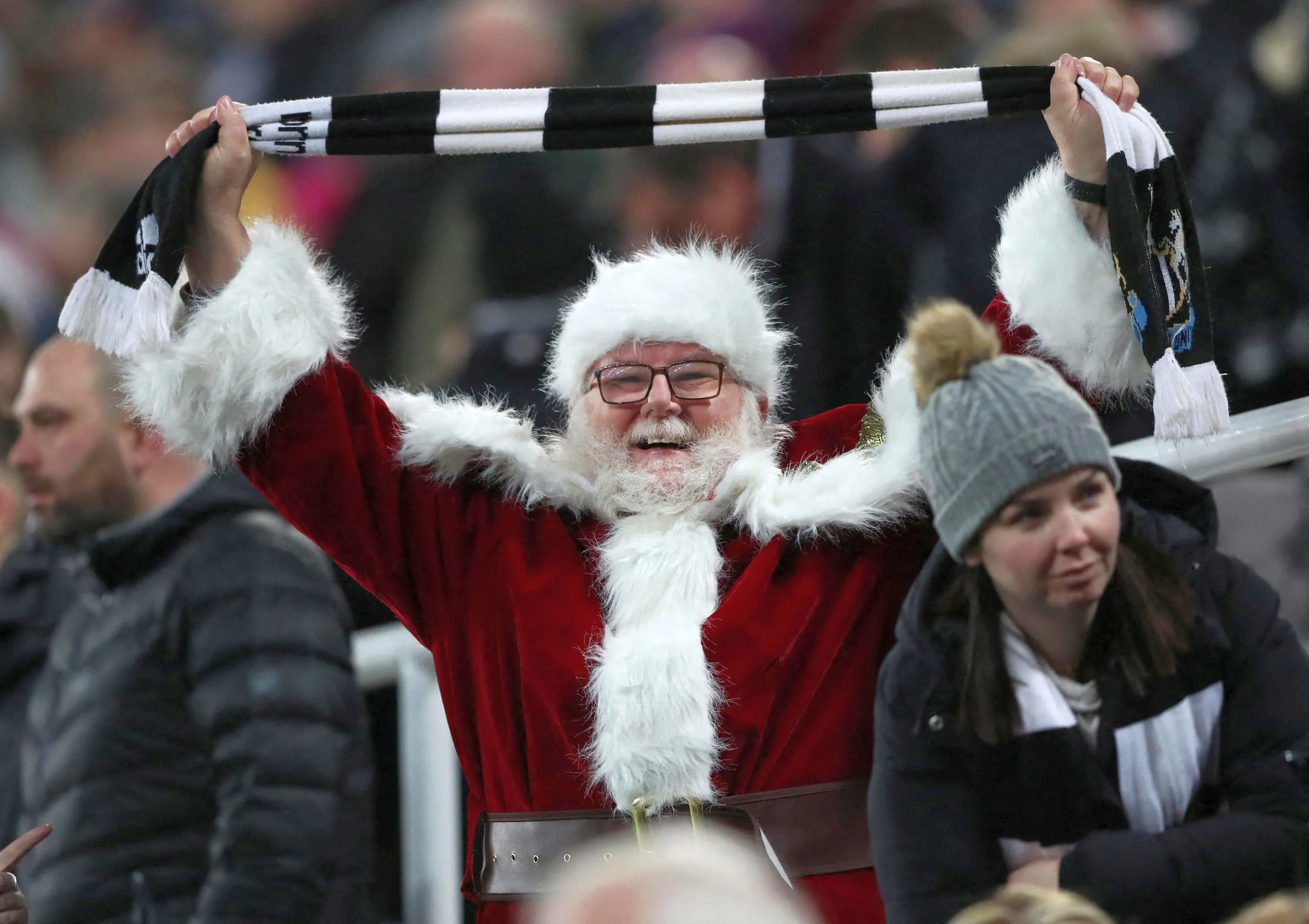 Newcastle United fan dressed as Father Christmas in St James' Park, Newcastle, Britain on December 20, 2022. (Photo by Scott Heppell/Reuters)