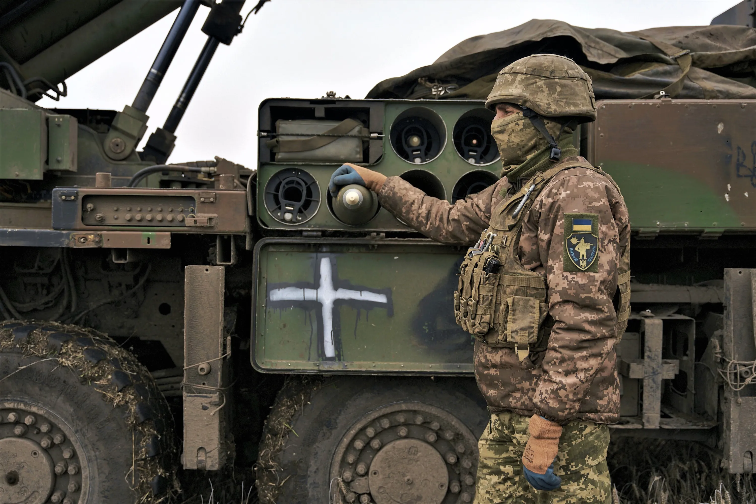 A Ukrainian soldier prepares to fire a French-made CAESAR self-propelled howitzer towards Russian positions near Avdiivka, Donetsk region, Ukraine, Monday, December 26, 2022. (Photo by Libkos/AP Photo)