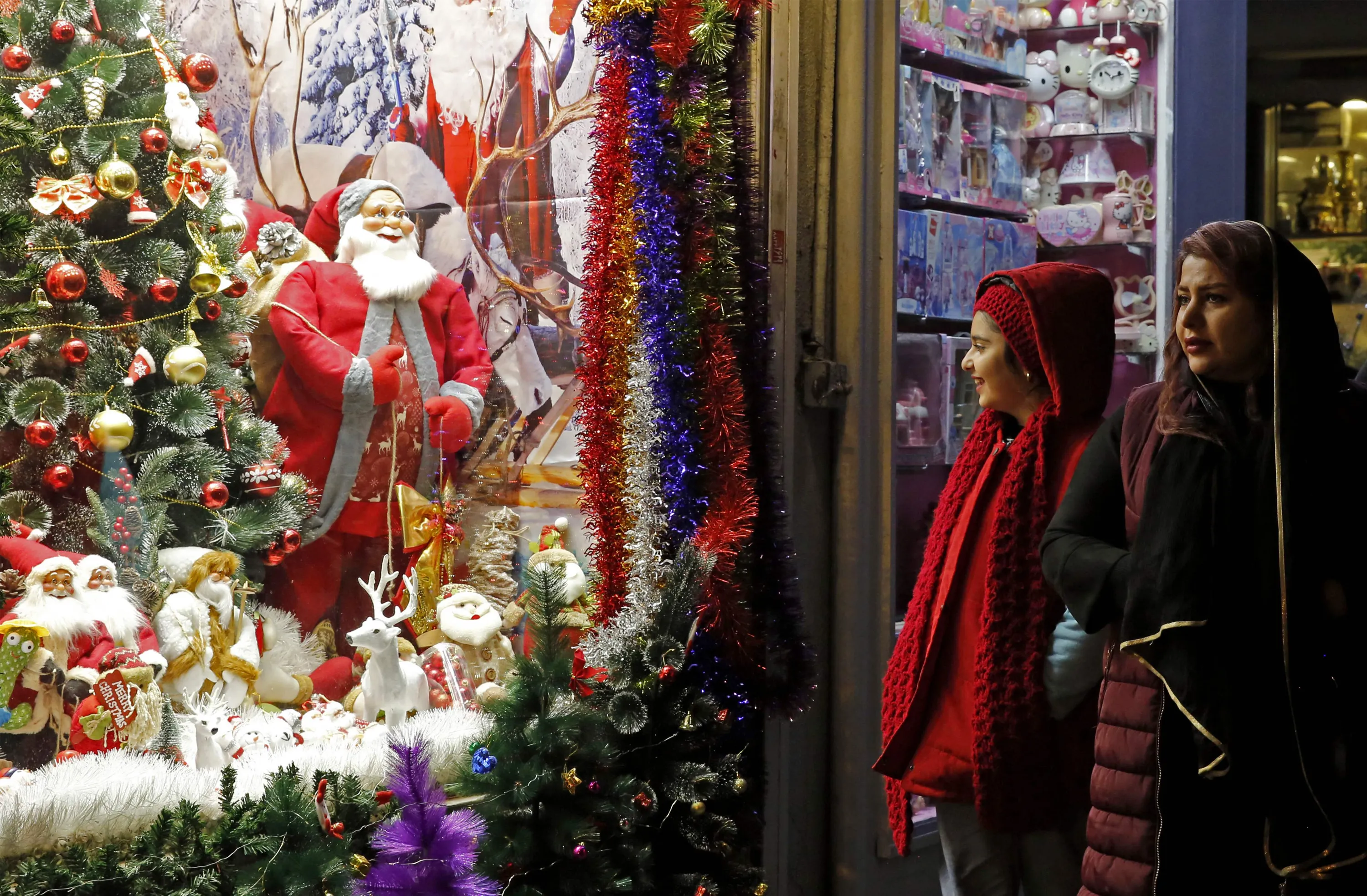 Iranians walk past a shop selling Christmas decoration in the capital Tehran on December 25, 2022. (Photo by AFP Photo/Stringer)