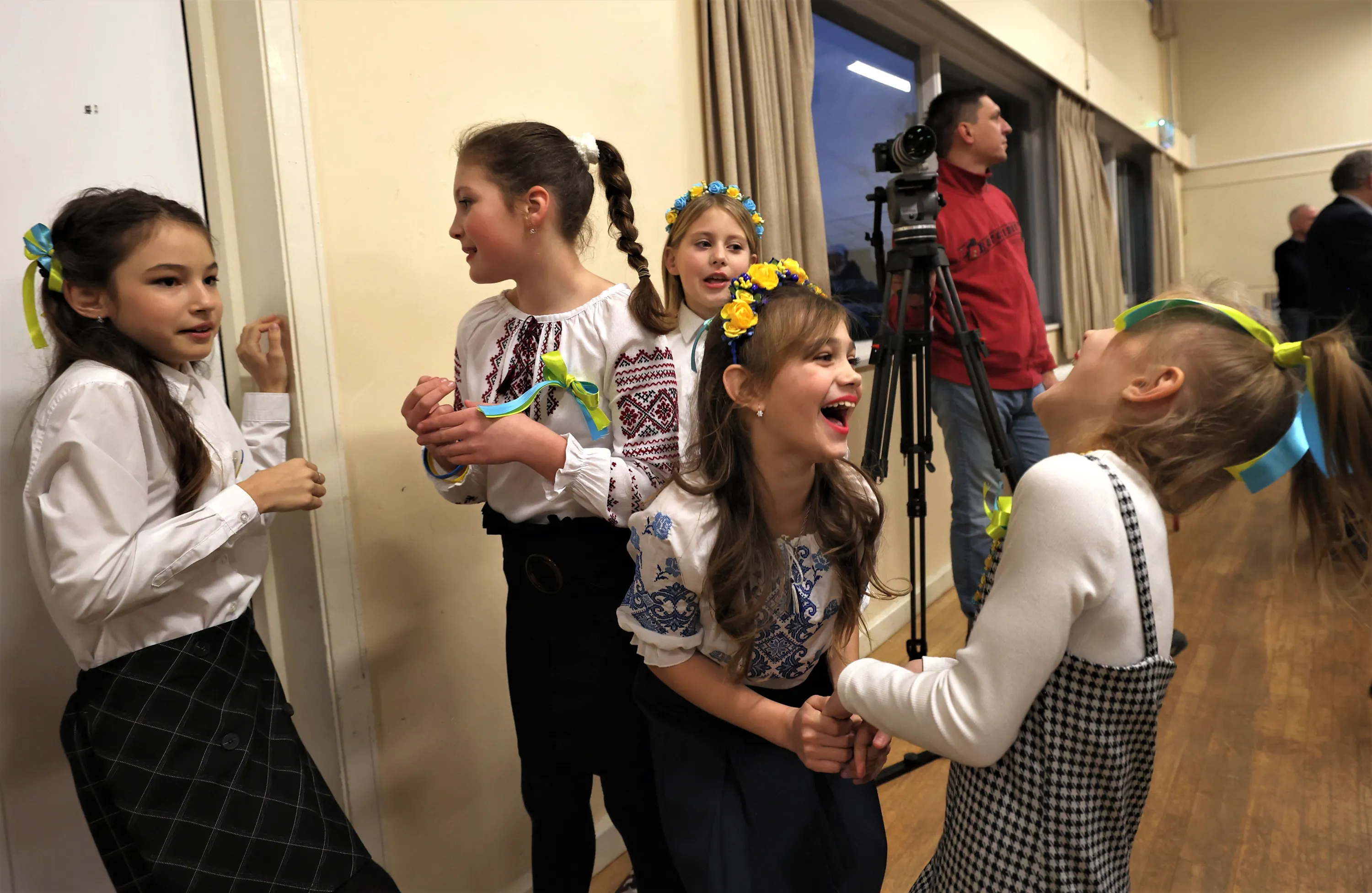 Ukrainian children preparing for their performance at this evening opening of the Irish Red Cross / Ukrainian Action In Ireland Ukraine Community Centre in Rathmines, Dublin on December 2, 2022. (Photo by Nick Bradshaw/The Irish Times)