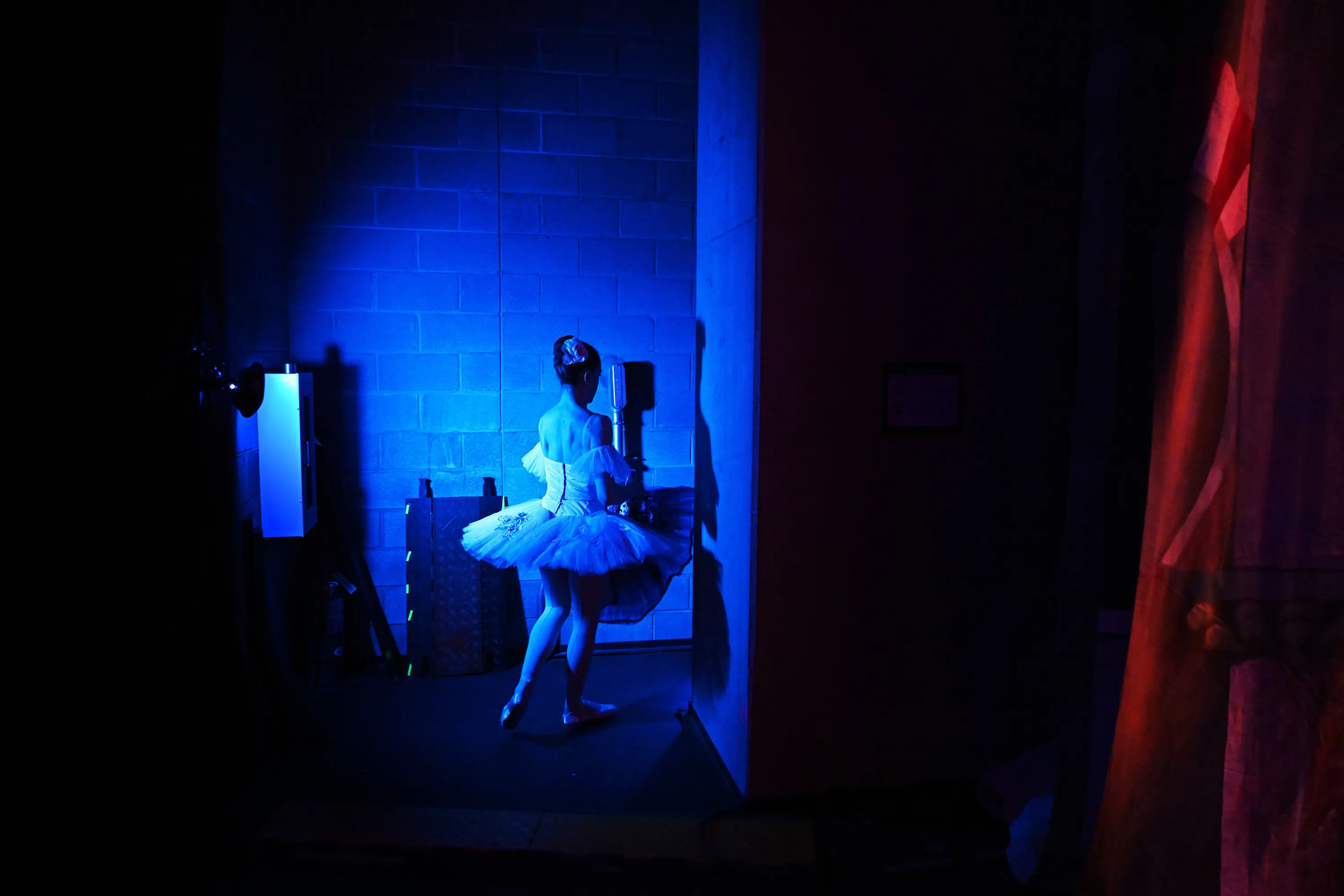 A dancer is illuminated backstage during a Manassas Ballet Theatre presentation of the Nutcracker at the Hilton Performing Arts Center on Sunday December 18, 2022 in Manassas, VA. The production featured dancers from ten countries, including those from the United States. (Photo by Matt McClain/The Washington Post)