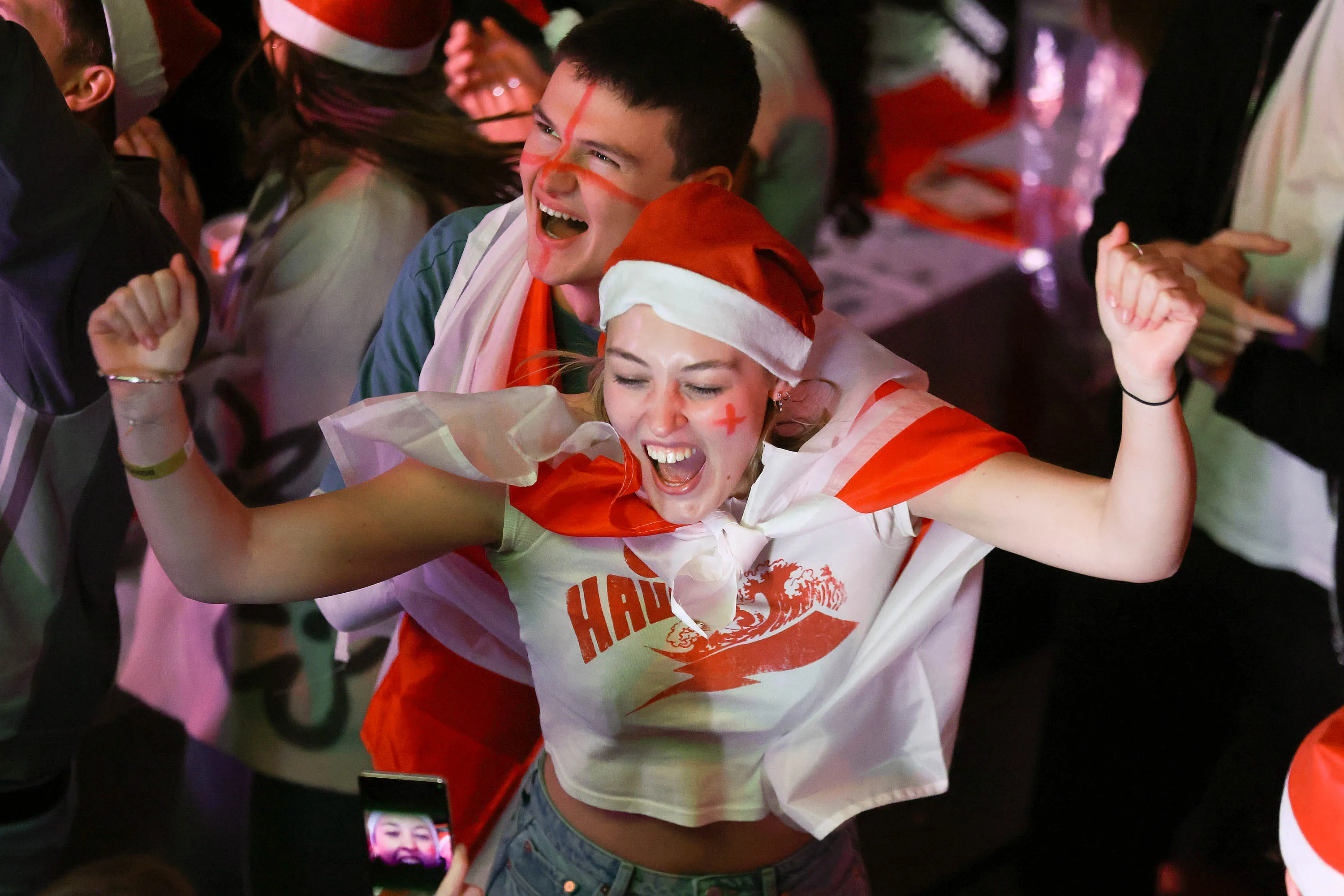 England WC Game Screening BoxPark Wembley in London, United Kingdom on December 4, 2022. Fans gather at BoxPark Wembley to watch England play Senegal in the 2022 World Cup finals. (Photo by Martyn Wheatley/i-Images)