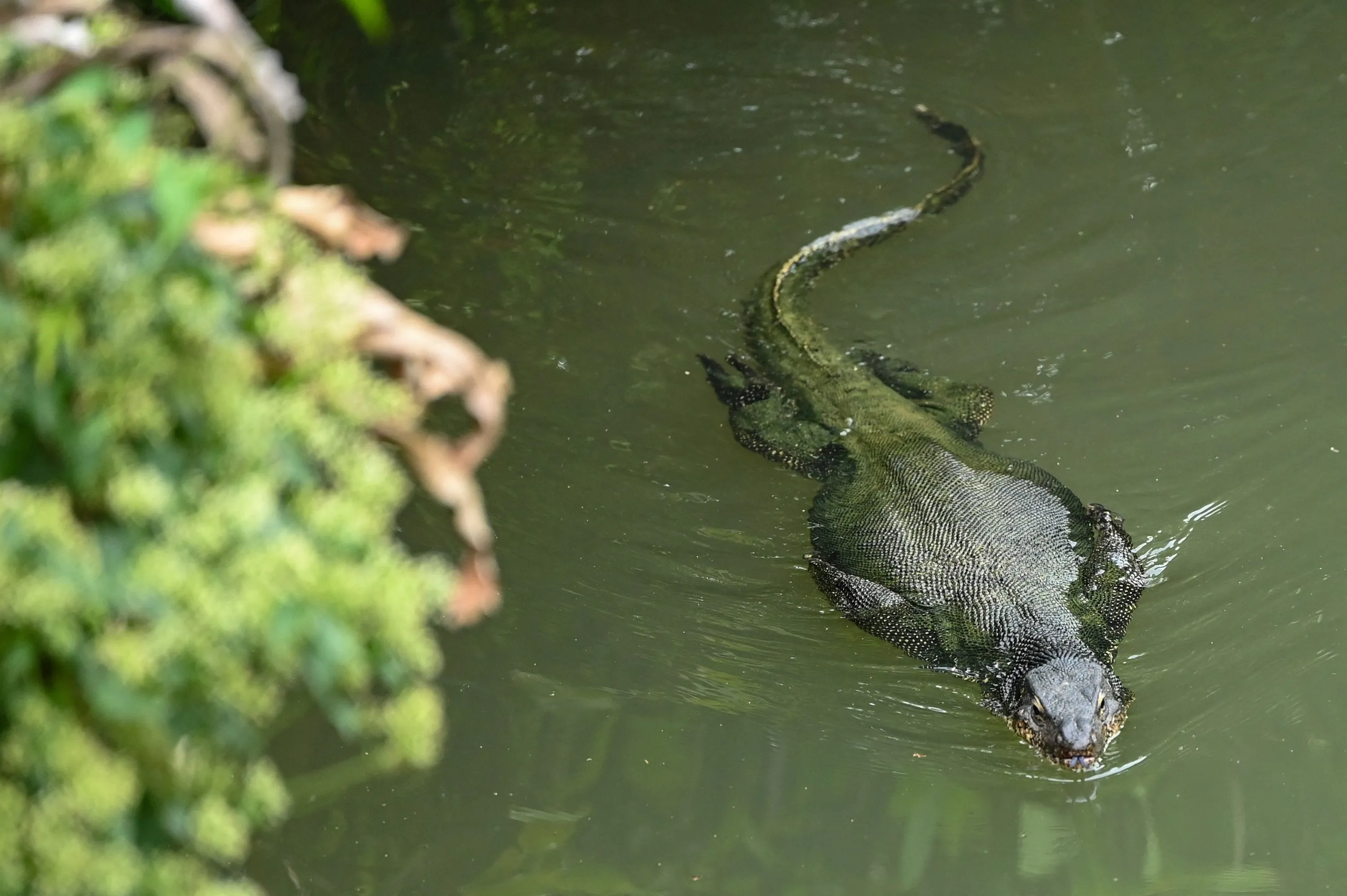 A Malayan water monitor hunts for food in a lake at Garden by the Bay in Singapore on December 12, 2022. (Photo by Roslan Rahman/AFP Photo)