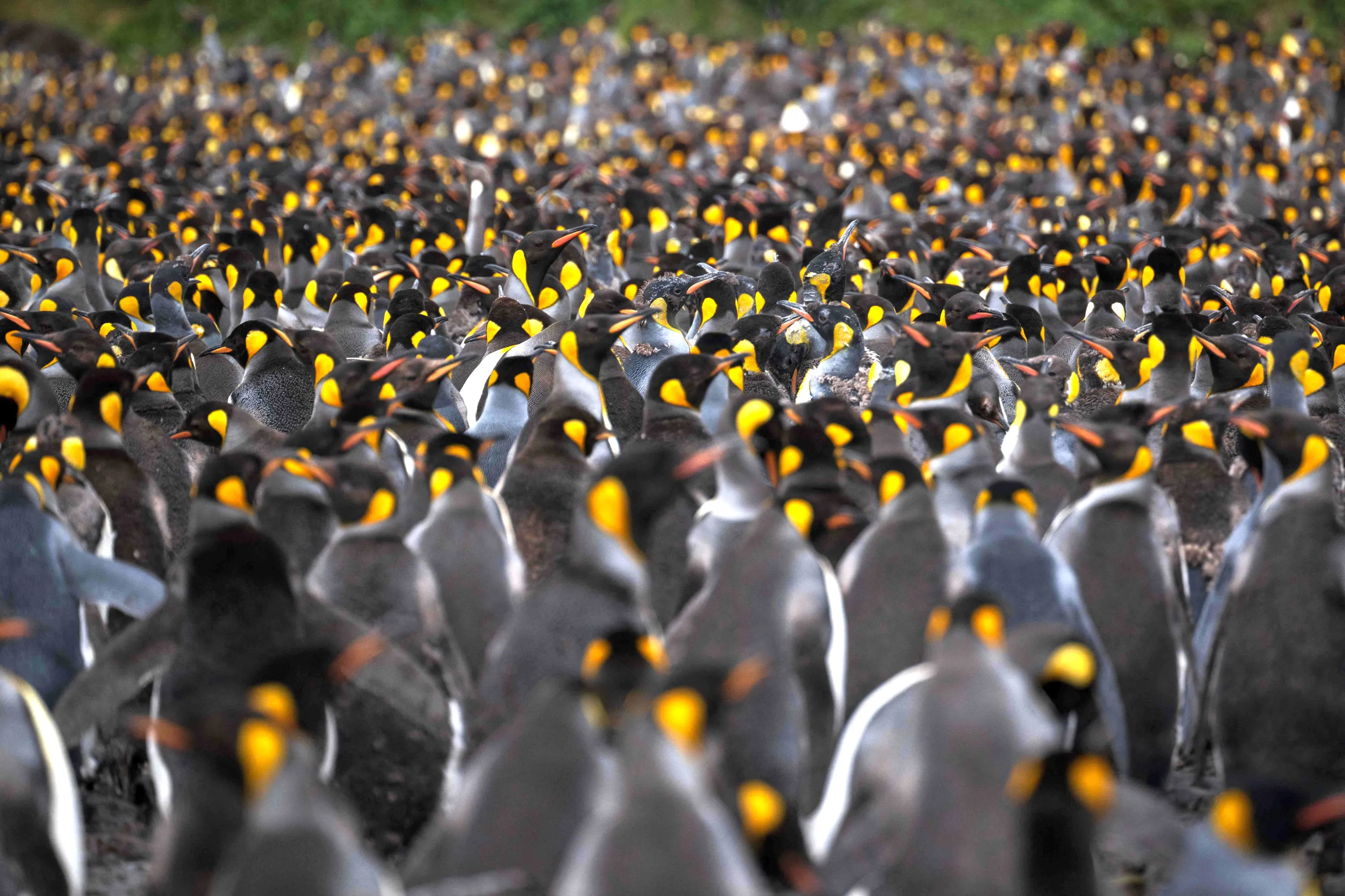 Thousands of penguins (Manchots Royaux) are pictured on December 21, 2022 on the Desolation Island, part of the Crozet Islands which are a sub-Antarctic archipelago of small islands in the southern Indian Ocean. They form one of the five administrative districts of the French Southern and Antarctic Lands. The Crozet Islands are home to four species of penguins. Most abundant are the macaroni penguin, of which some 2 million pairs breed on the islands, and the king penguin, home to 700,000 breeding pairs; half the world's population. Mammals living on the Crozet Islands include fur seals and southern elephant seals. Killer whales have been observed preying upon the seals. (Photo by Patrick Hertzog/AFP Photo)