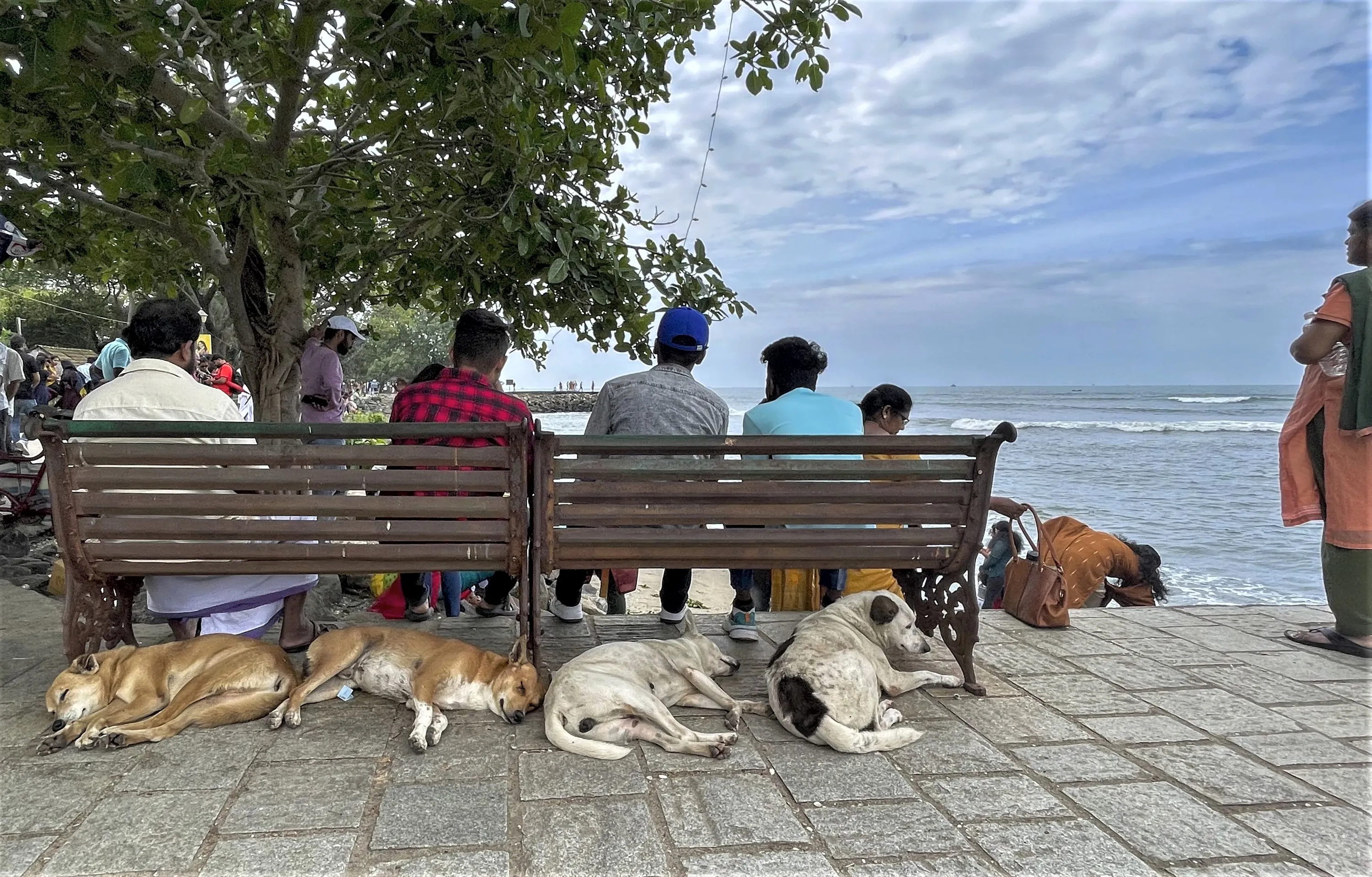 Stray dogs sleep under the benches at the Fort Kochi beach on the Arabian Sea coast in Kochi, India, Monday, December 26, 2022. (Photo by R.S. Iyer/AP Photo)