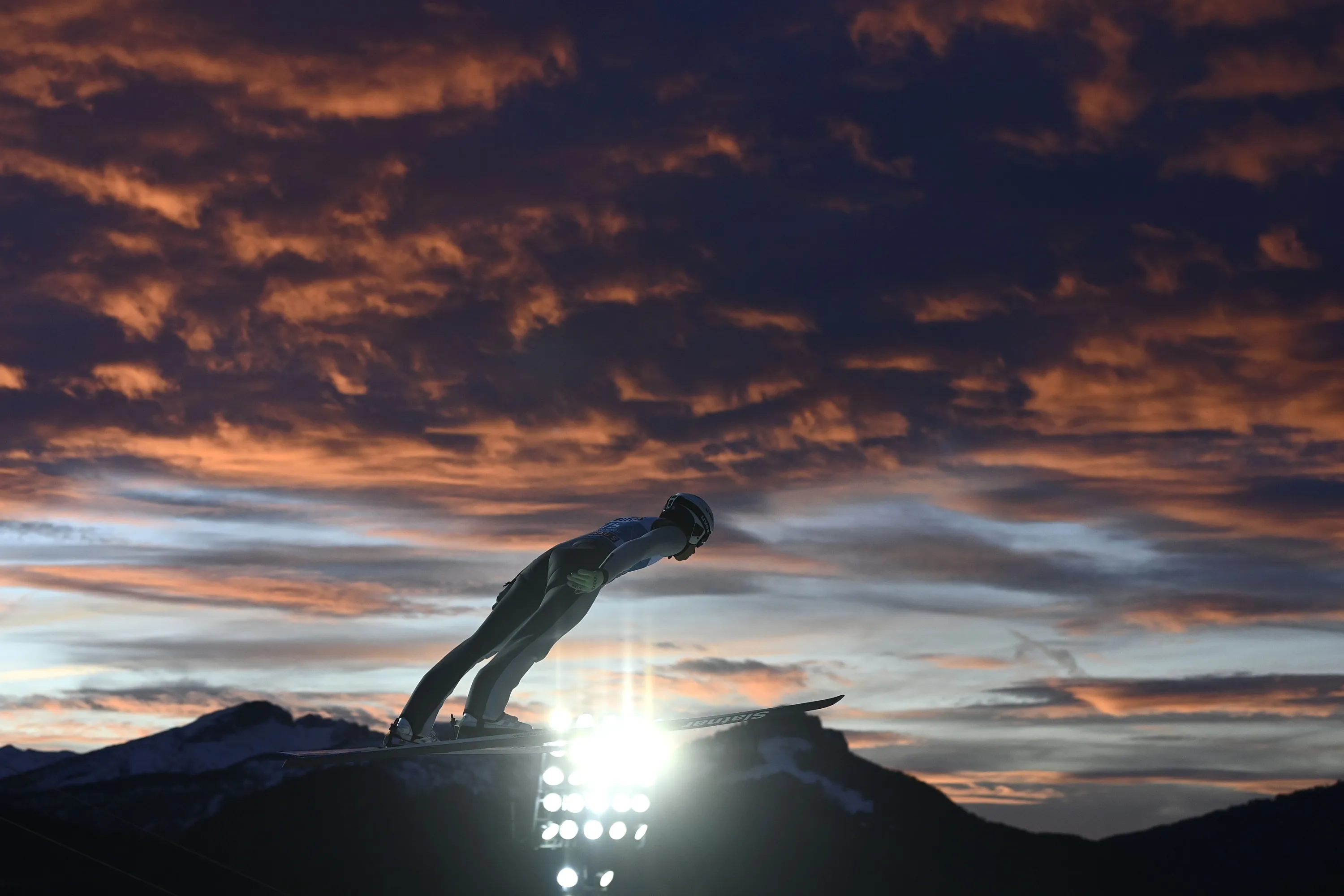 Daniel Andrei Cacina of Romania in action during the qualification for the first stage of the 71st Four Hills Ski Jumping Tournament in Oberstdorf, Germany, 28 December 2022. (Photo by Anna Szilagyi/EPA/EFE)