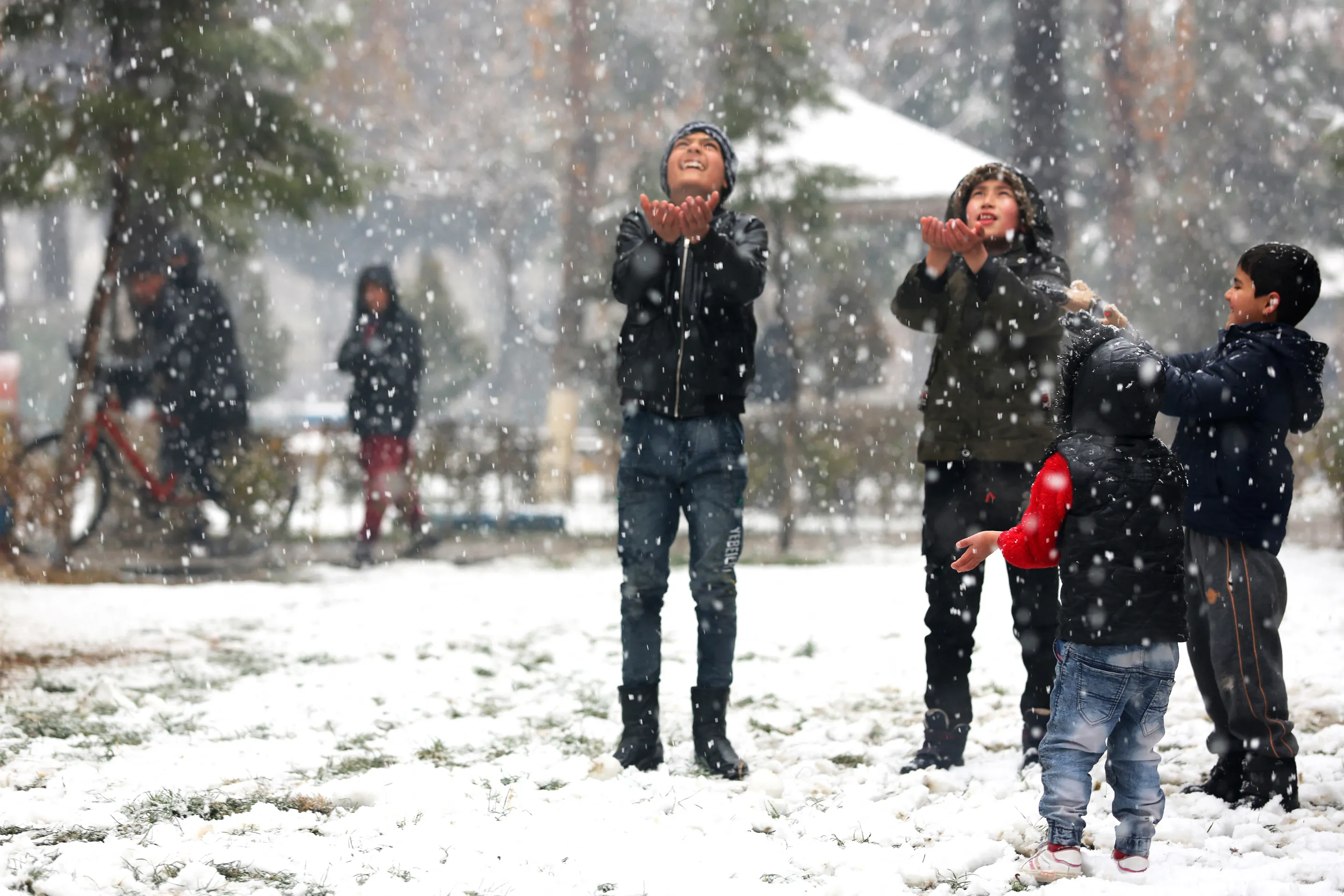 Boys play in a park during snowfall in Kabul on December 29, 2022. (Photo by AFP Photo/Stringer)