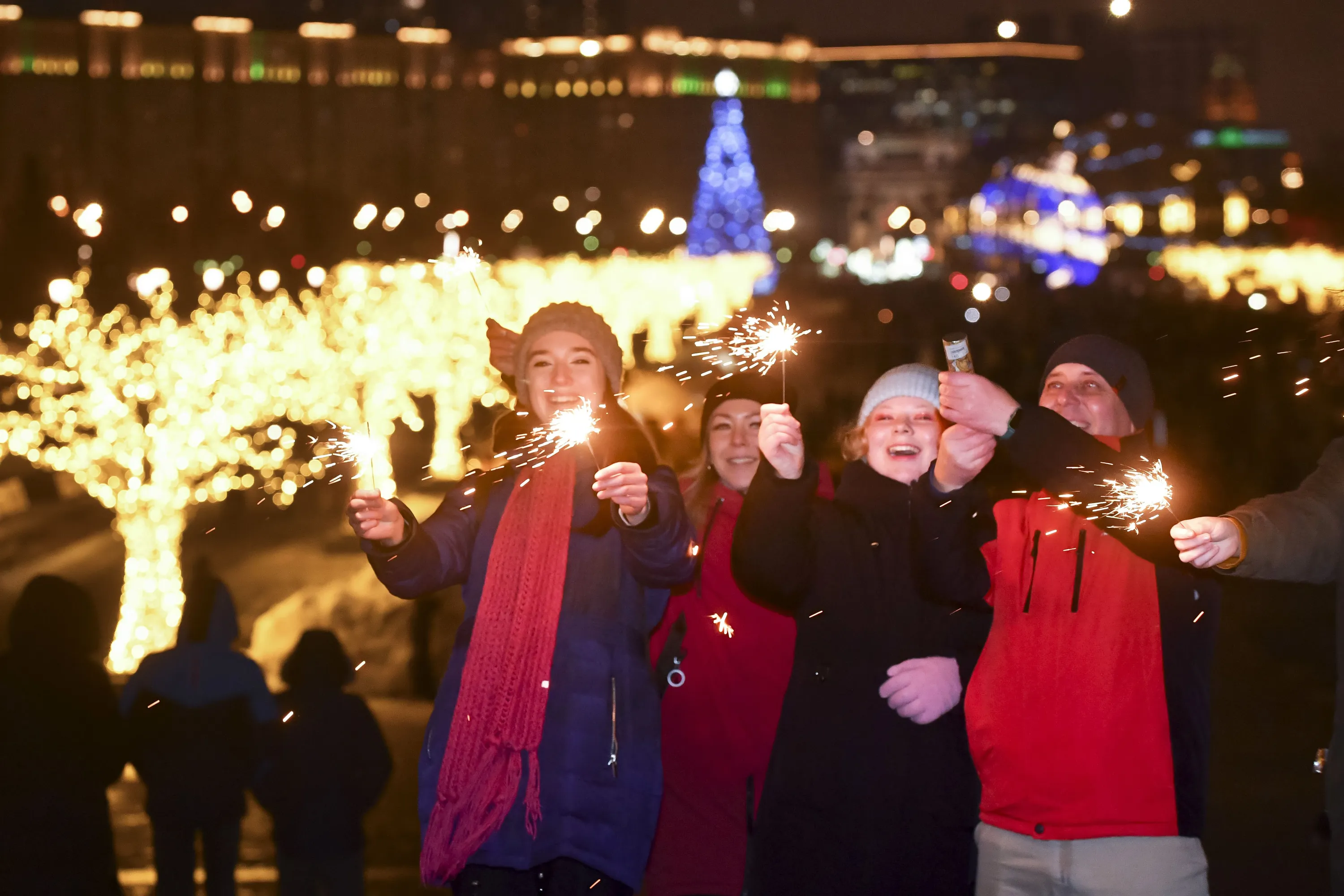 Youths celebrate the New Year in the center of Moscow, Russia, Sunday, January 1, 2023. (Photo by AP Photo/Stringer)