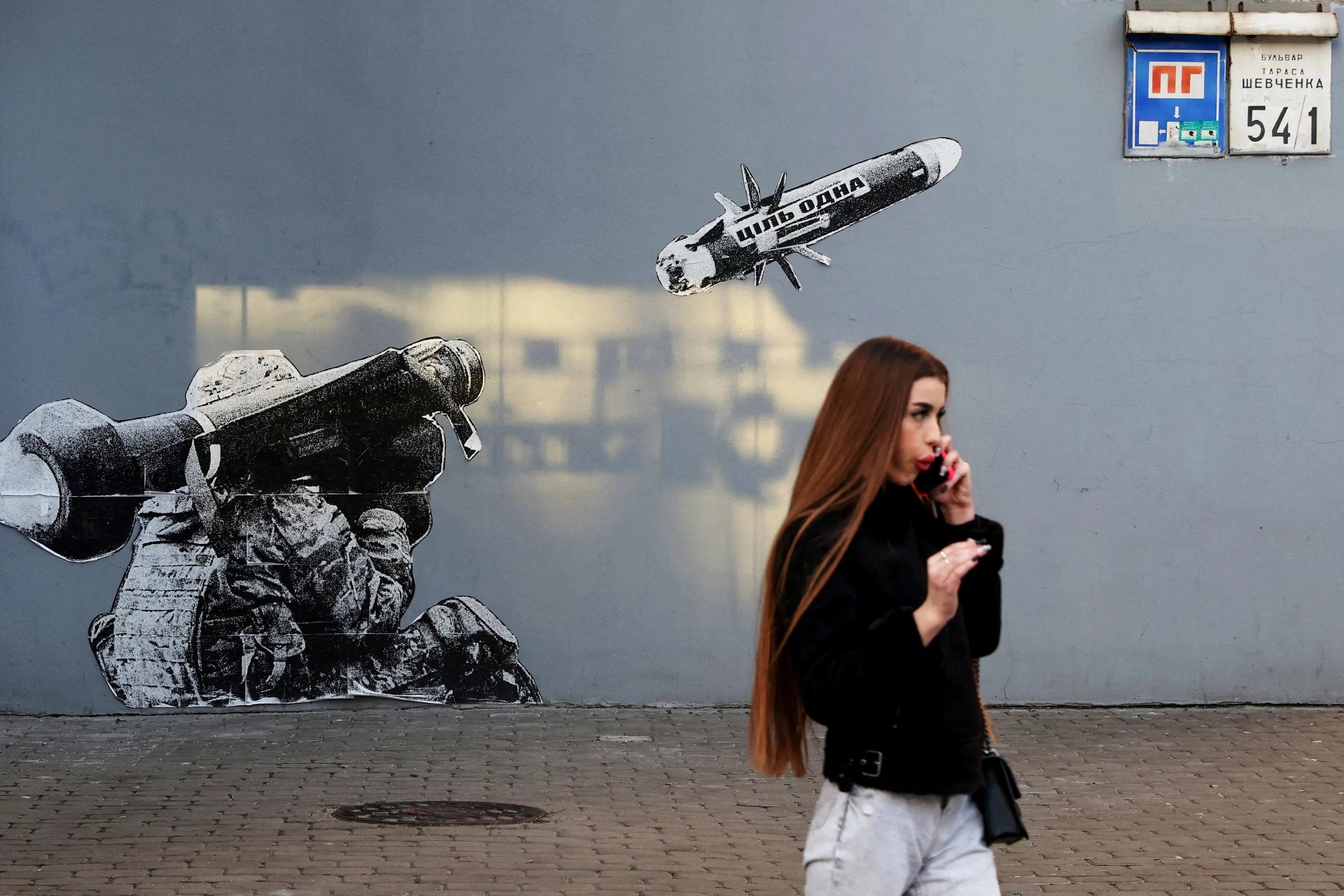 A woman walks by graffiti painted wall, as Russia’s attack on Ukraine continues, outside a coffee shop in Kyiv, Ukraine on December 4, 2022. (Photo by Shannon Stapleton/Reuters)