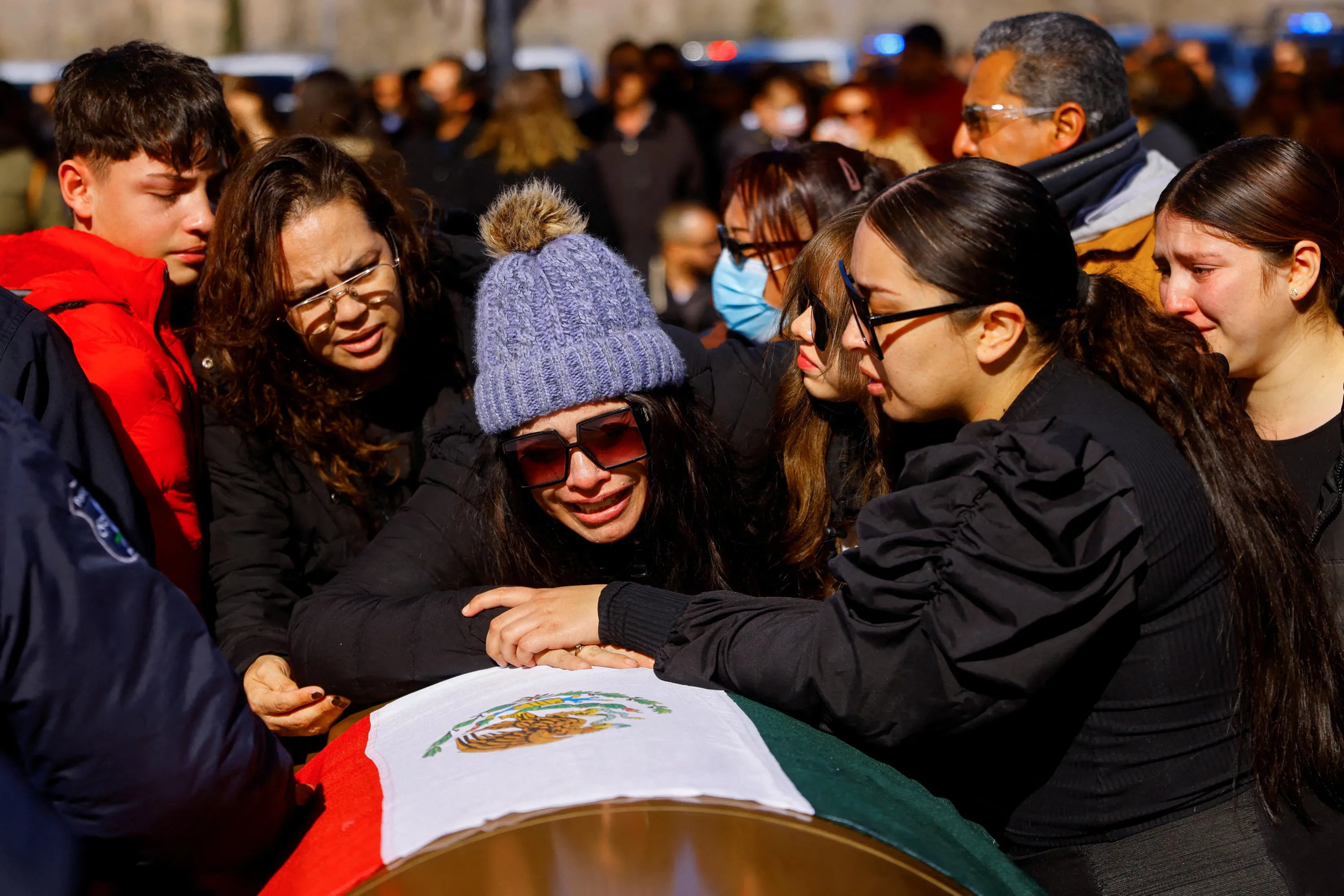 Family members of prison guard killed during a riot at the Cereso 3 prison react over the coffin during a tribute to pay homage to the prison guards killed and to the police officers from the State Investigation Agency killed during the search for the fugitives, in Ciudad Juarez, Mexico on January 4, 2023. (Photo by Jose Luis Gonzalez/Reuters)