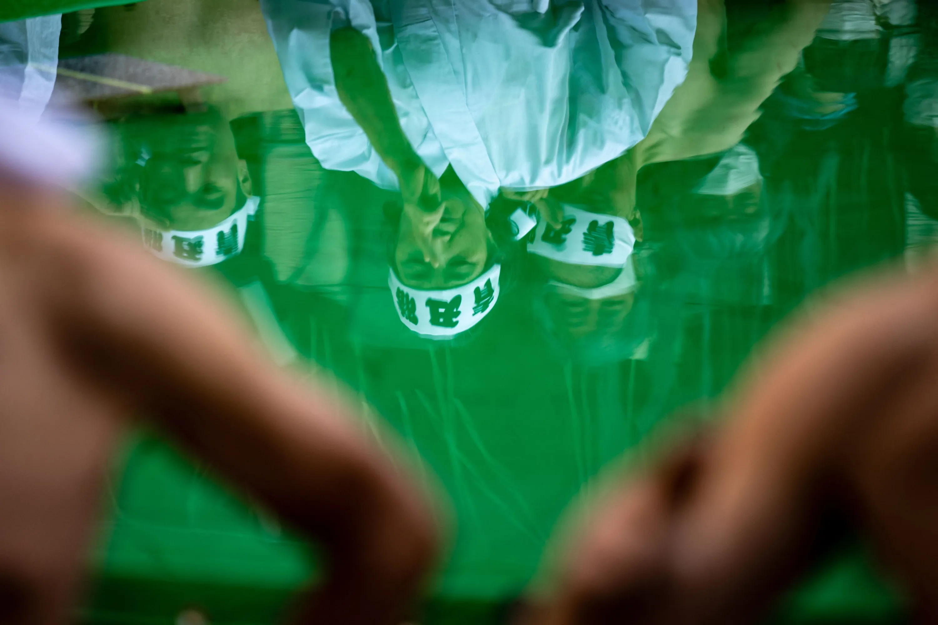 Shinto believers of the Teppozu Inari Shrine warm up before taking a bath in cold water to purify their souls and bodies during a New Year ritual in Tokyo on January 8, 2023. (Photo by Philip Fong/AFP Photo)