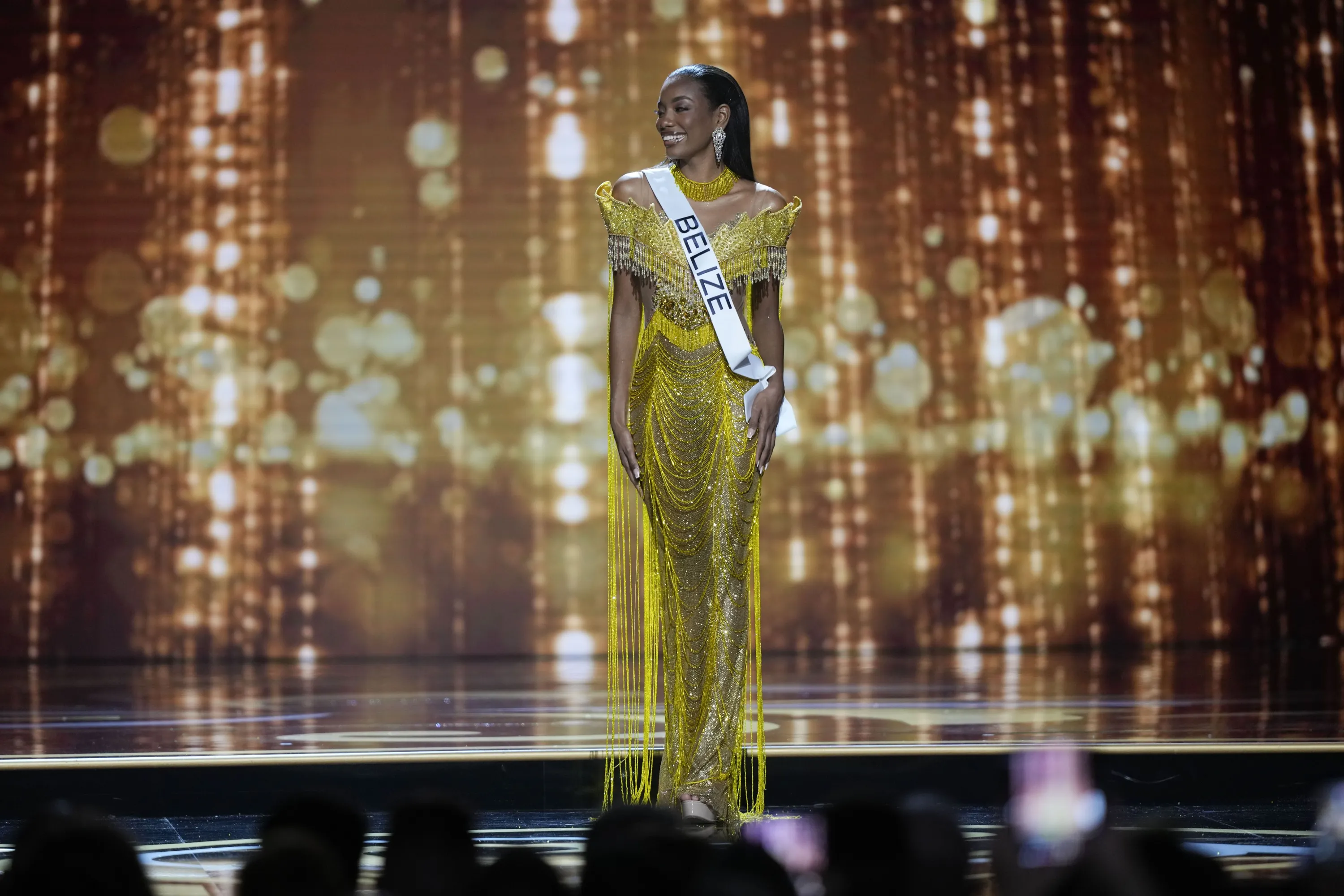 Miss Belize Ashley Lightburn competes in the evening gown competition during the preliminary round of the 71st Miss Universe Beauty Pageant in New Orleans, Wednesday, January 11, 2023. (Photo by Gerald Herbert/AP Photo)
