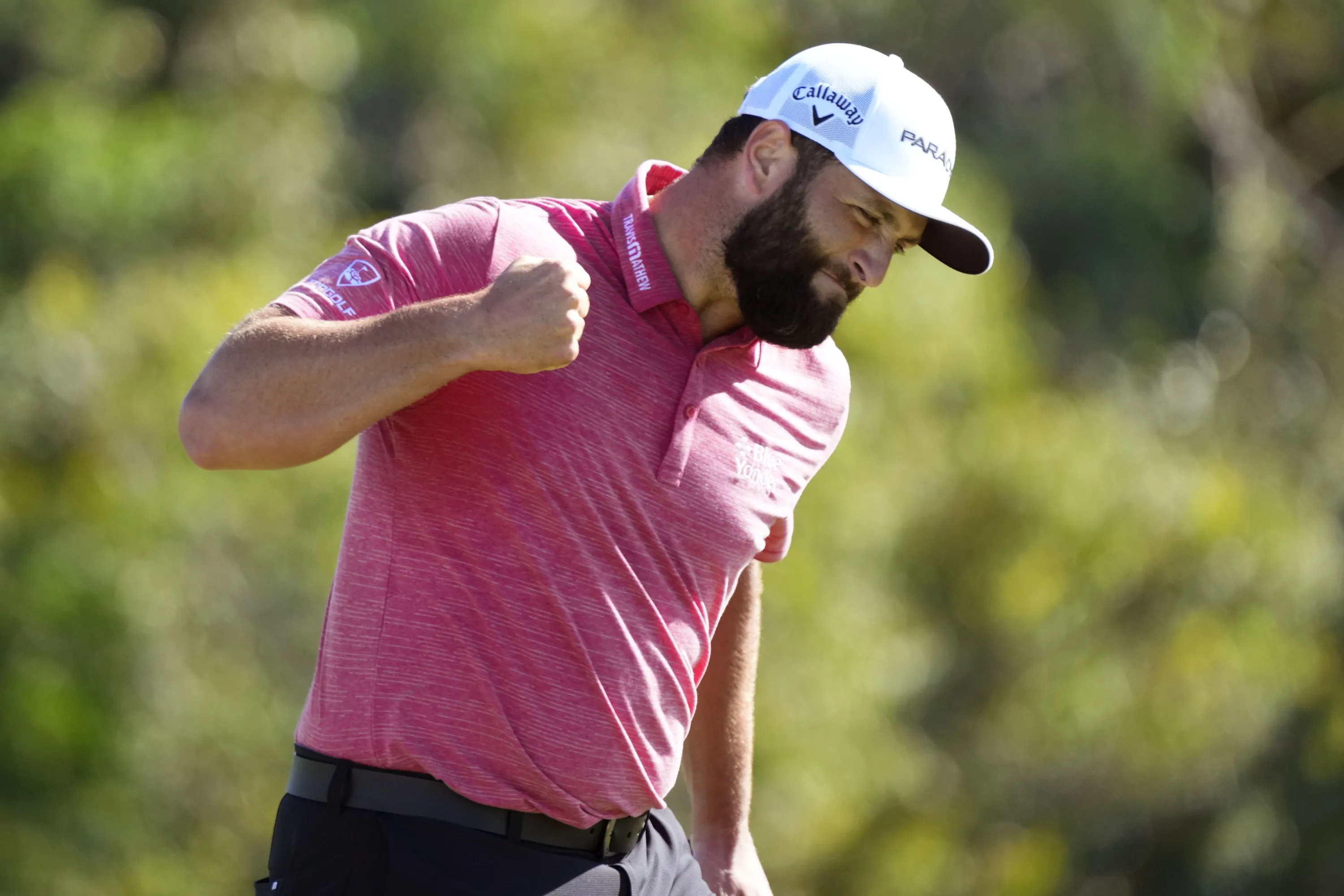 Jon Rahm, of Spain, celebrates his birdie putt on the 18th green during the final round of the Tournament of Champions golf event, Sunday, January 8, 2023, at Kapalua Plantation Course in Kapalua, Hawaii. (Photo by Matt York/AP Photo)