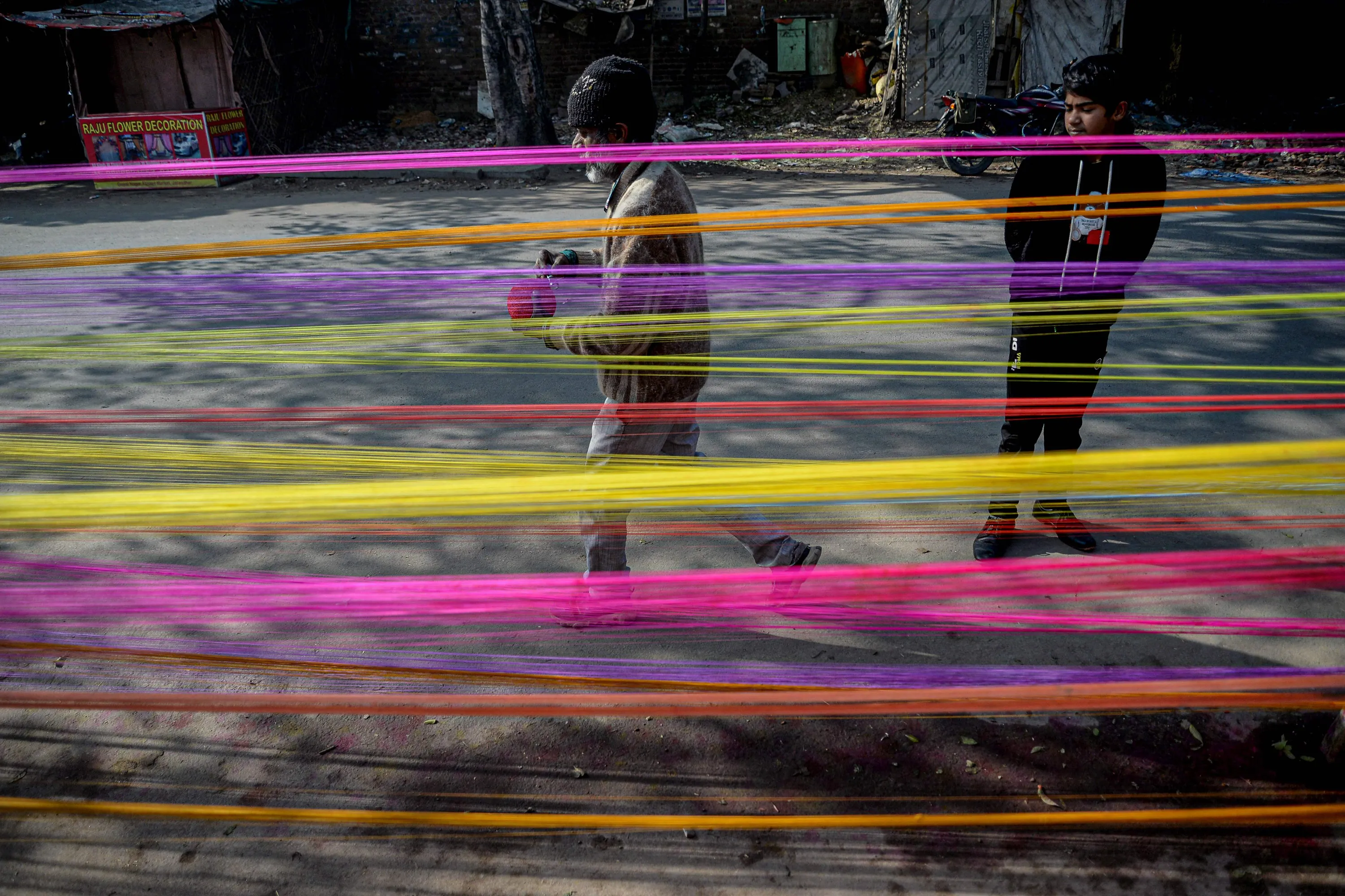 A man prepares kite string ahead of “Makar Sankranti” and “Lohri” festival celebrations, in Jalandhar on January 12, 2023. (Photo by Shammi Mehra/AFP Photo)