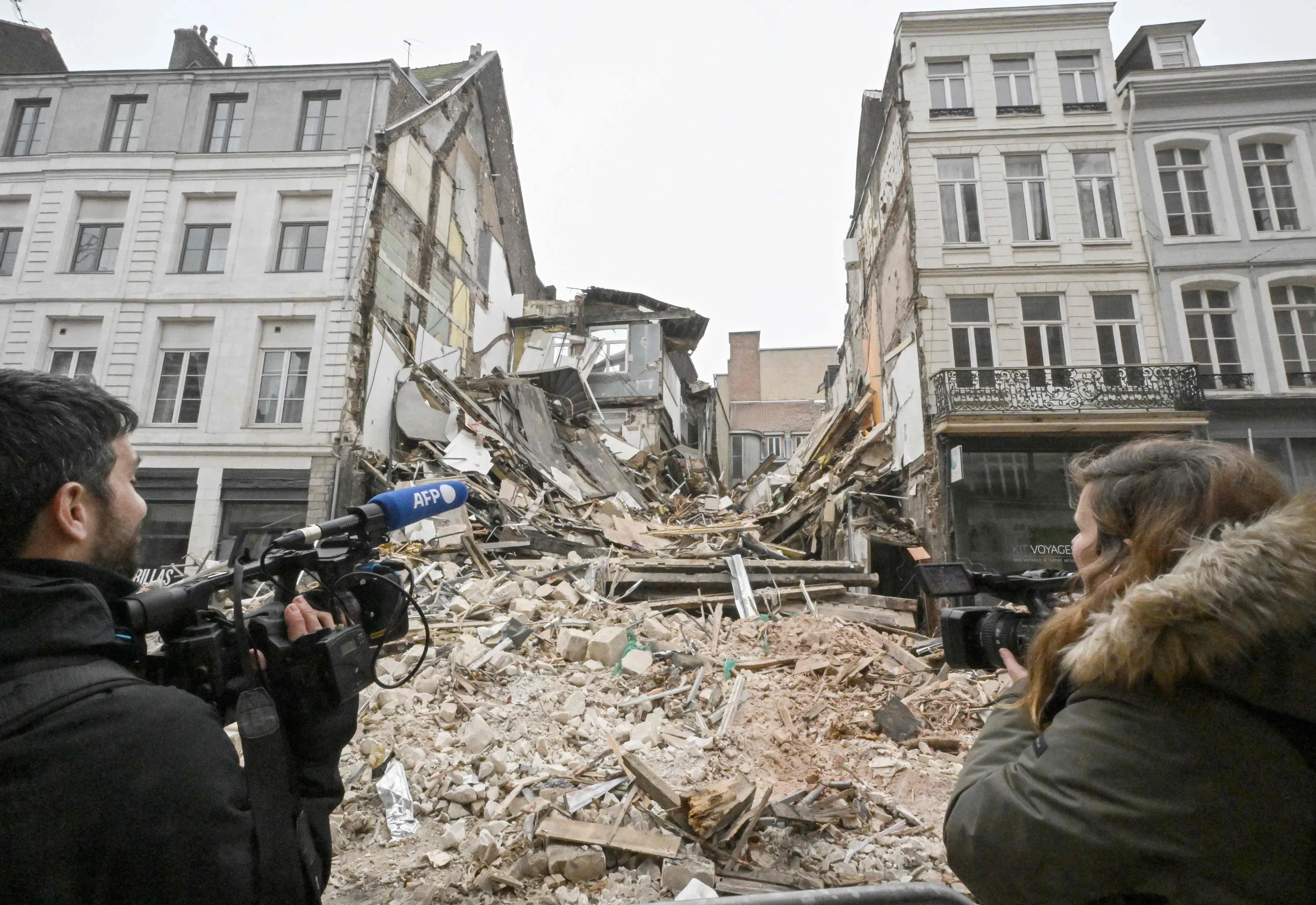 This photograph taken on November 14, 2022, shows the location where the two buildings collapsed in the centre Lille, France on November 12. (Photo by Francois Lo Presti/AFP Photo)