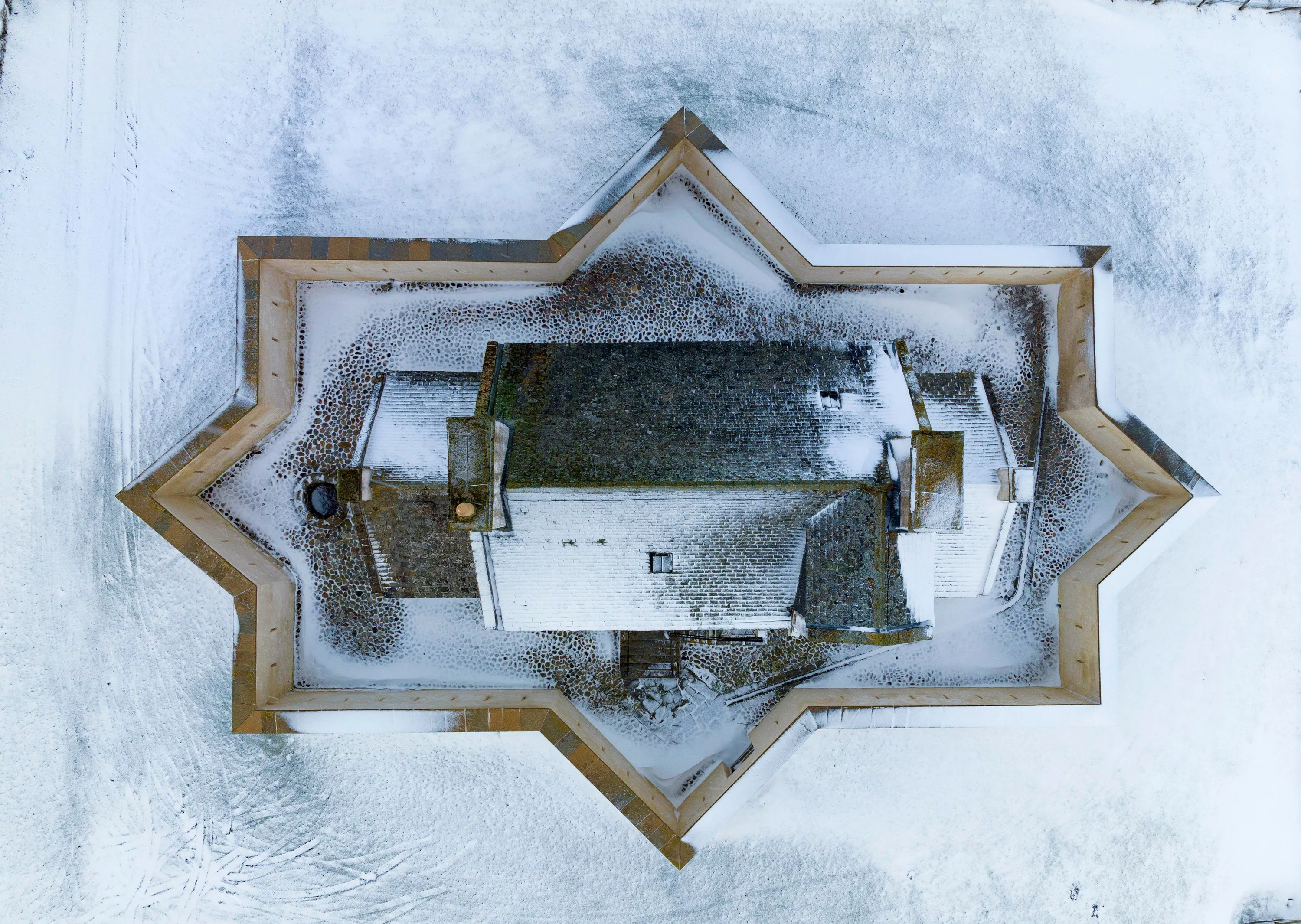The distinctive shape of Corgarff Castle in Aberdeenshire, Scotland surrounded by a snow covered landscape on December 7, 2022. The north and east of Scotland is currently subject to cold temperatures and strong northerly winds bringing snow to higher ground. (Photo by Iain Masterton/Alamy Live News)