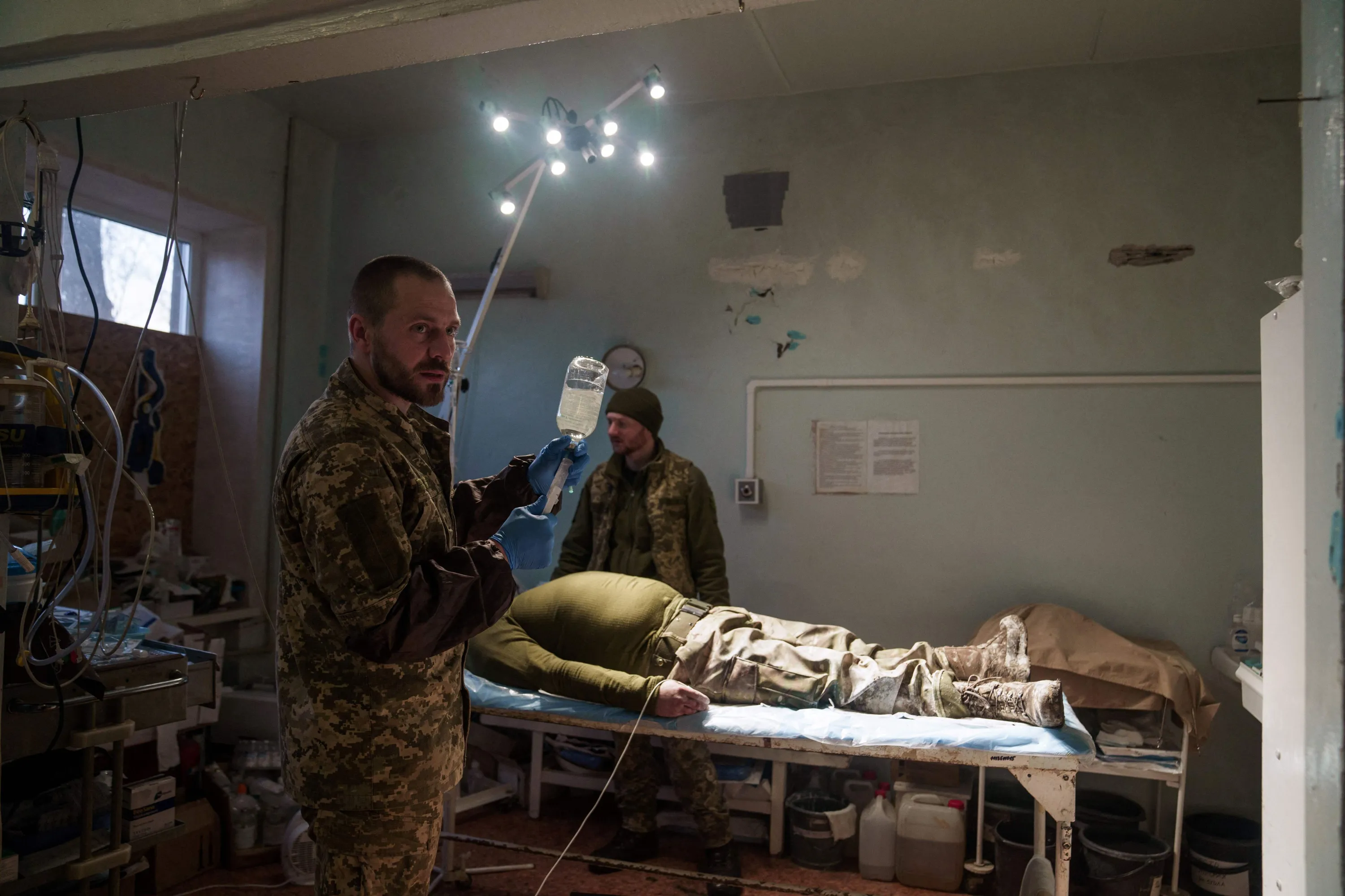 A military doctor operates on a slightly wounded Ukrainian soldier in a stabilisation hospital near the front line in Donetsk region on 17, 2023. (Photo by Ihor Tkachov/AFP Photo)