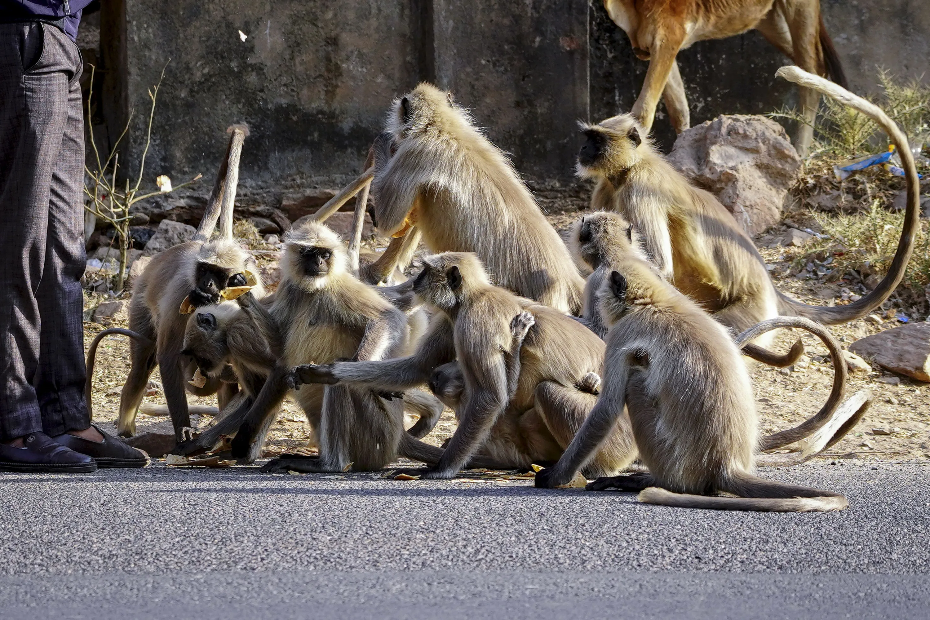 A man feed langur monkeys in Pushkar, Rajasthan, India on 30 December 2022. (Photo by Stringer/Anadolu Agency via Getty Images)