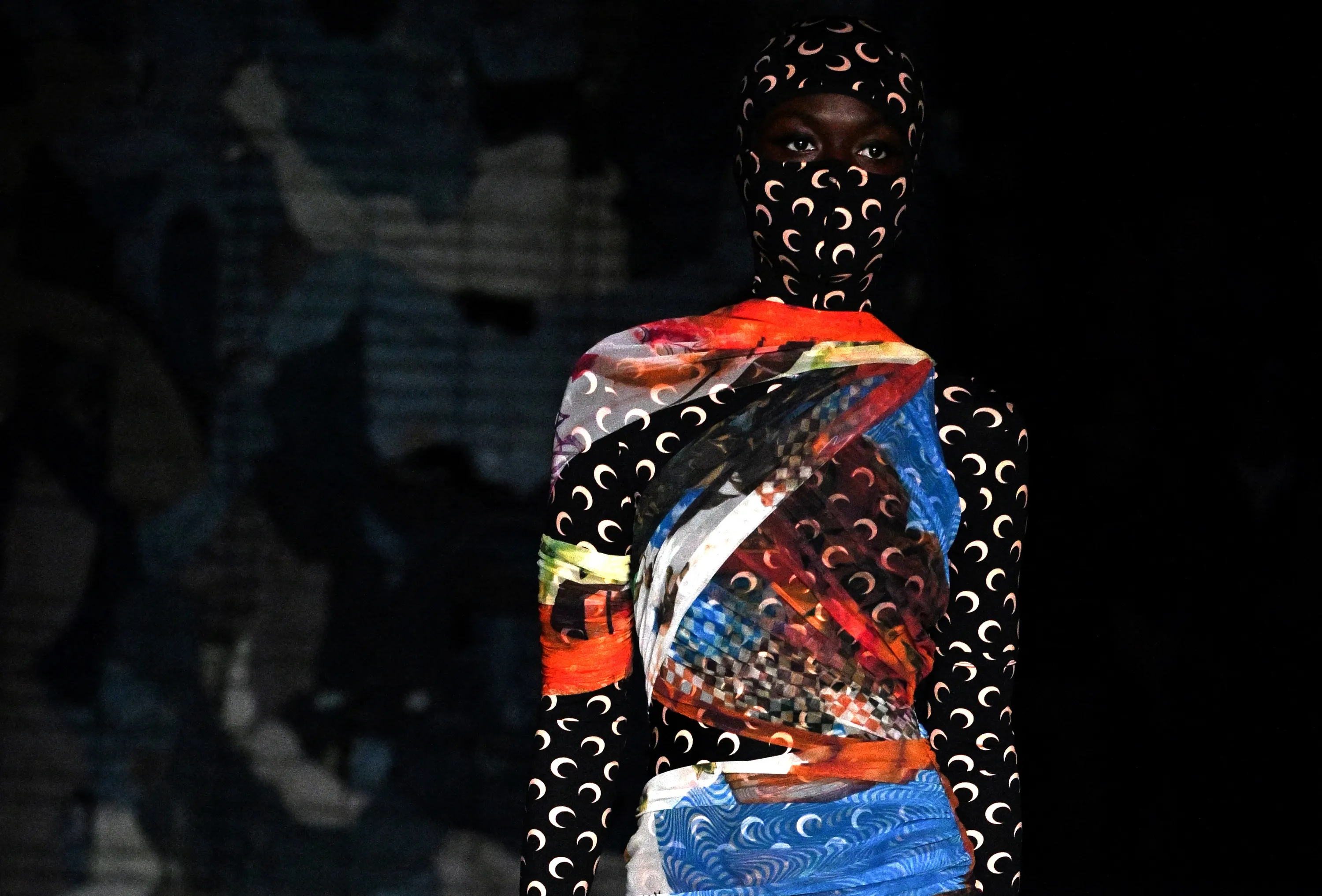 A model displays a creation during the Marine Serre show as part of the Menswear Ready-to-wear Fall-Winter 2023-2024 fashion week in Paris, on January 21, 2023. (Photo by Emmanuel Dunand/AFP Photo)