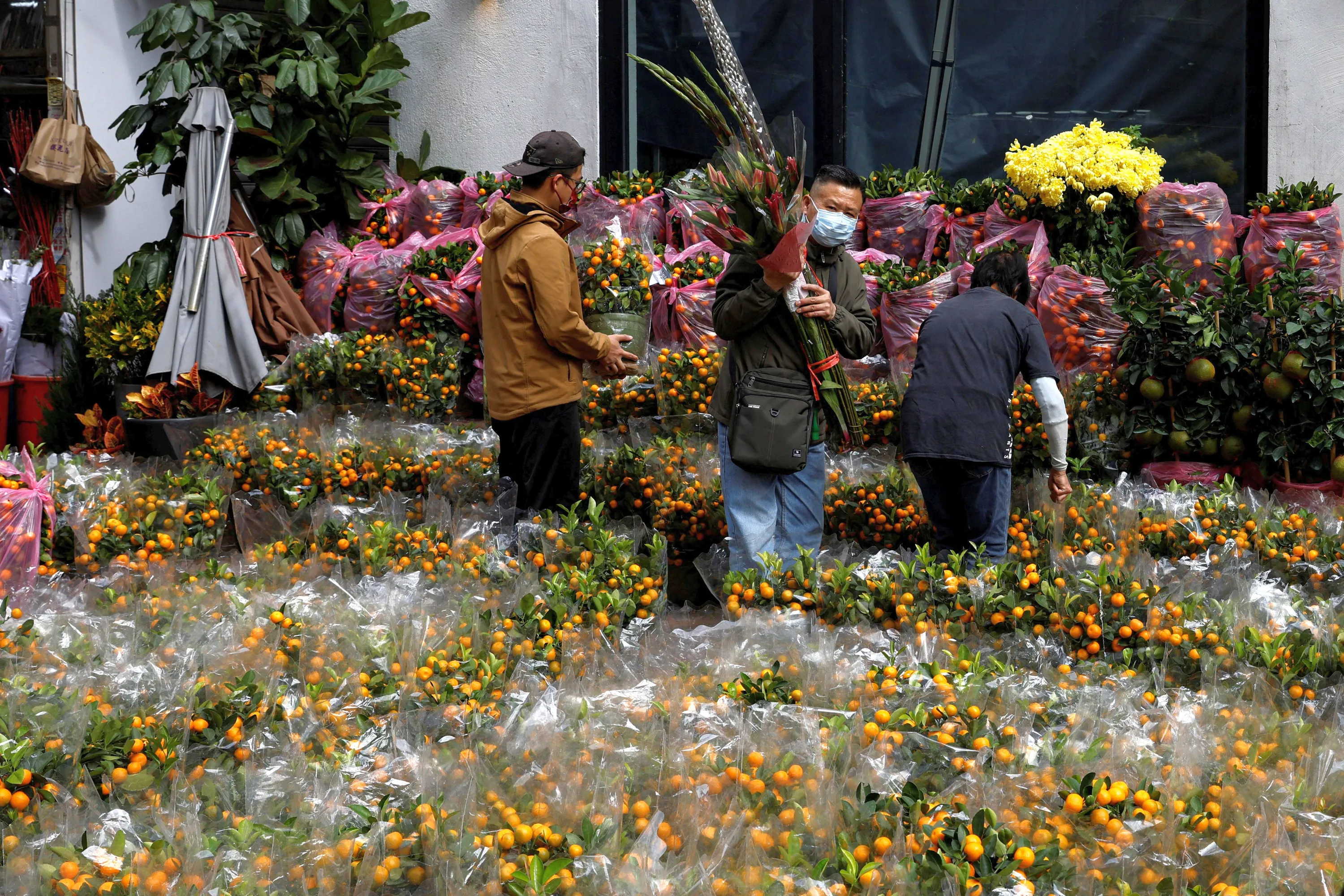 Customers wearing face masks shop for tangerine trees ahead of the Lunar New Year, during the coronavirus disease (COVID-19) pandemic in Hong Kong, China on January 20, 2023. (Photo by Tyrone Siu/Reuters)