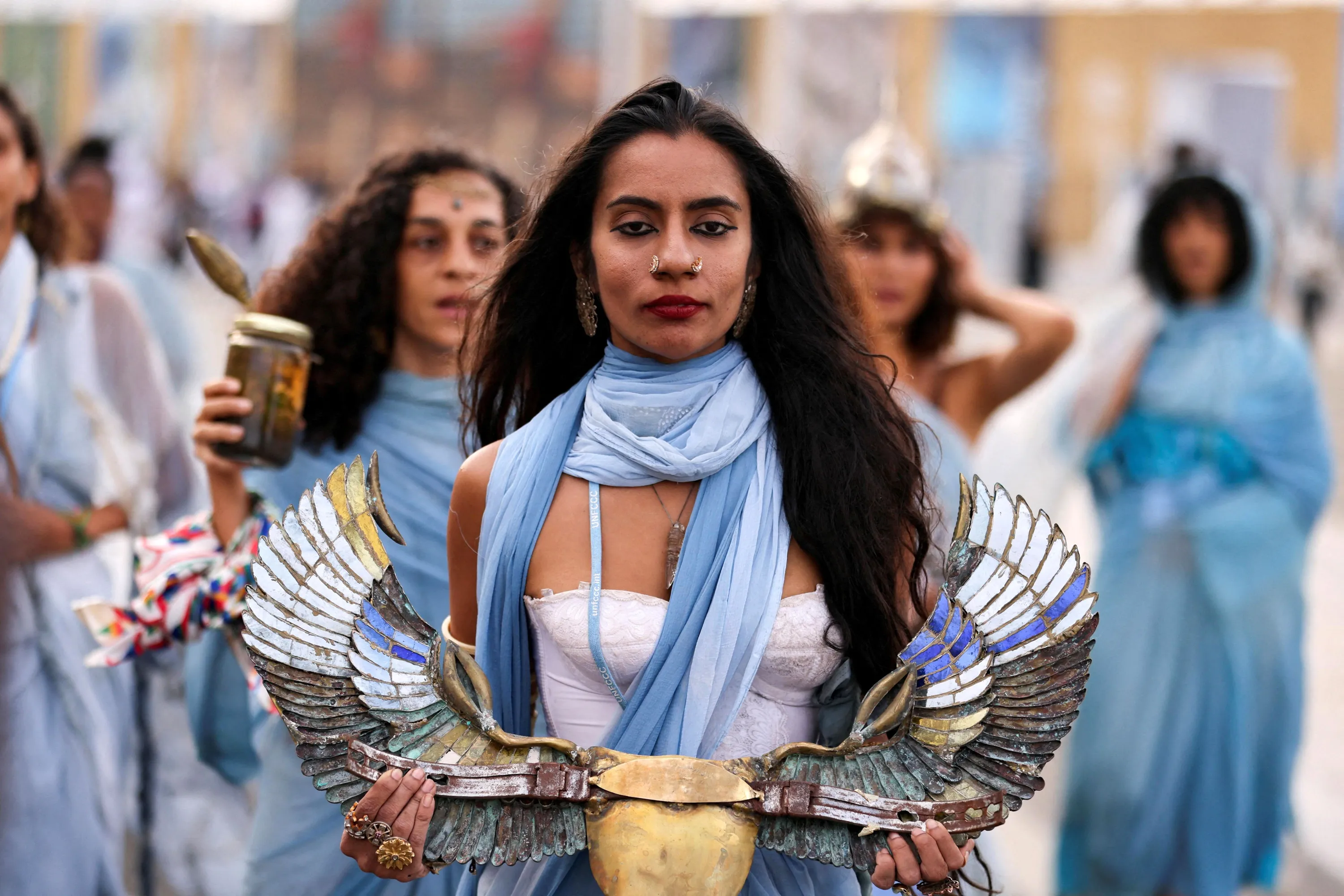 Climate activists take part in a protest during the COP27 climate summit, in Sharm el-Sheikh, Egypt on November 17, 2022. (Photo by Mohamed Abd El Ghany/Reuters)