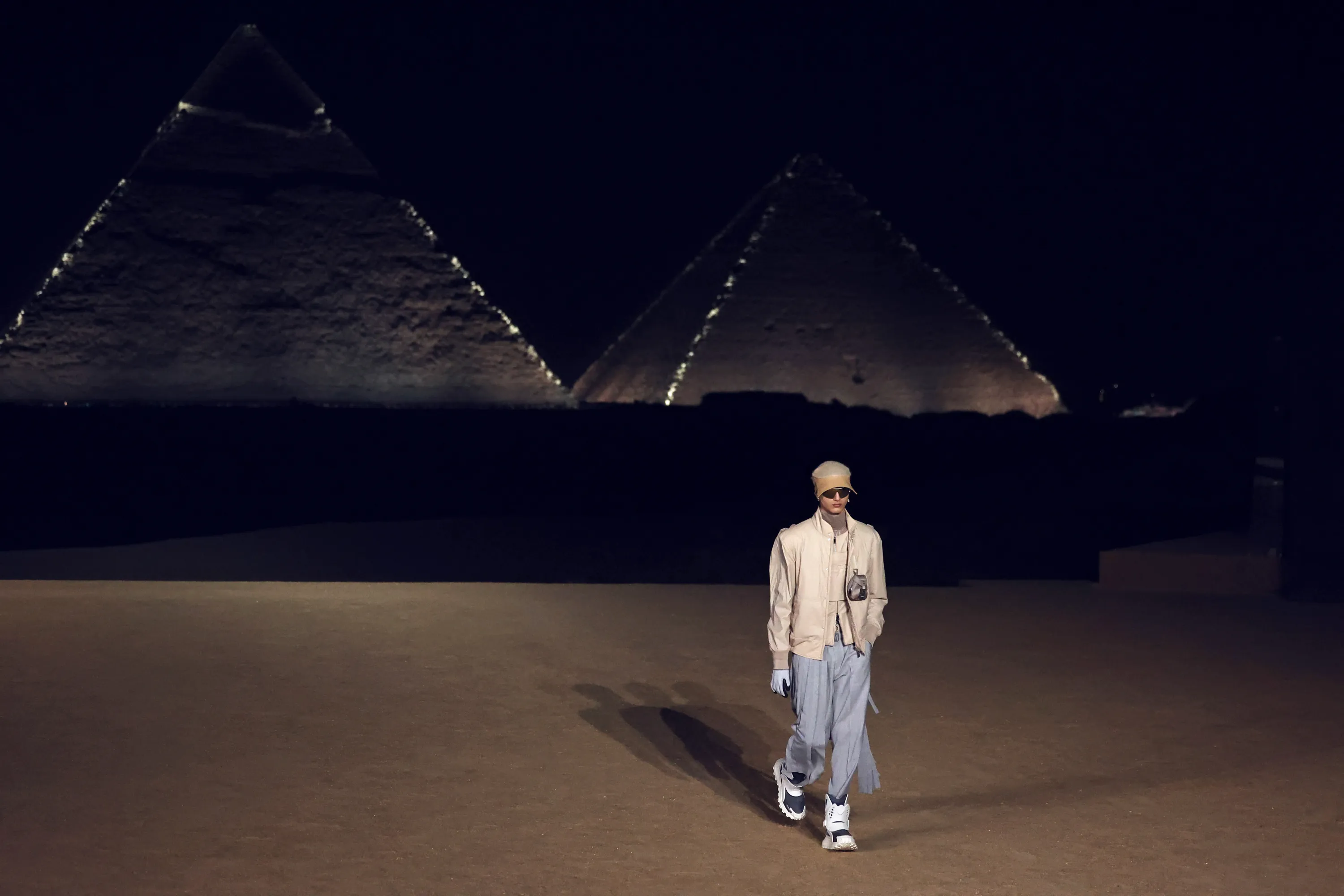 Models walk the runway during the Dior Fall 2023 Menswear show on December 3, 2022 at the Giza Pyramids in Cairo, Egypt. (Photo by Jonathan Rashad/Getty Images)