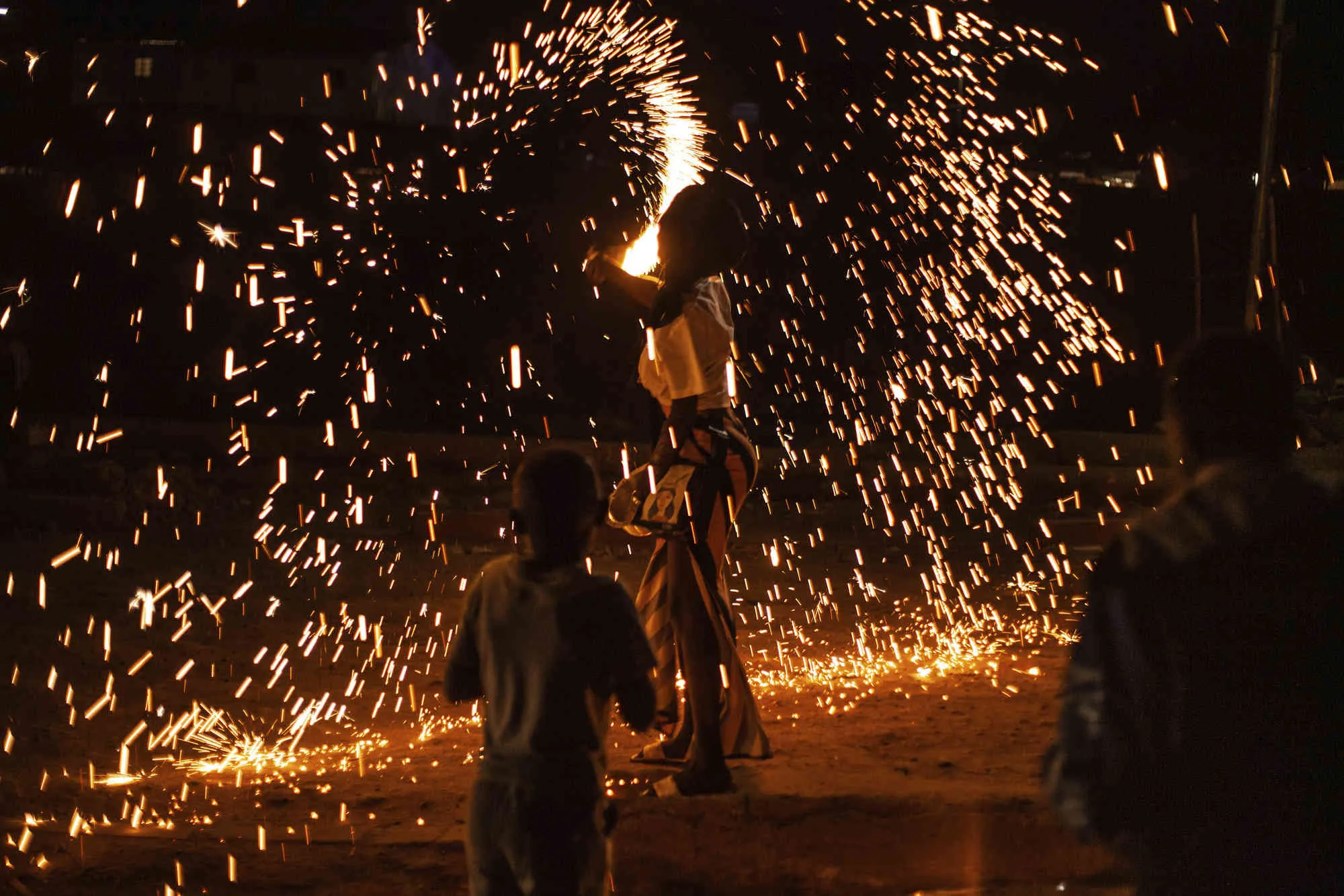 Faith Atieno burns fireworks on night of Christmas day at Kibera slums on Sunday December 25, 2022, in Nairobi, Kenya. (Photo by Samson Otieno/AP Photo)