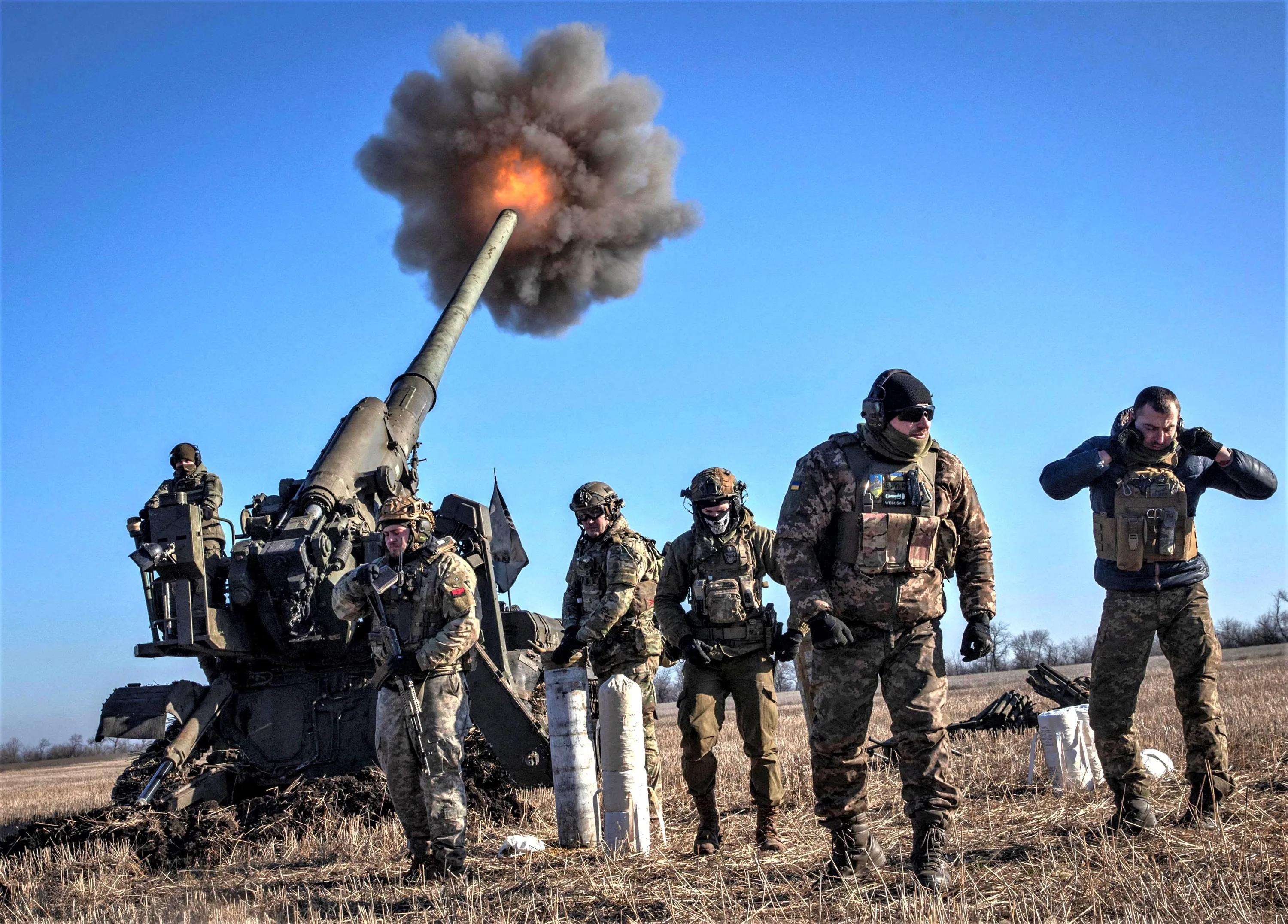 Ukrainian servicemen fire a 2S7 Pion self-propelled gun toward Russian positions, amid Russia's attack on Ukraine, on a frontline near Bakhmut in Donetsk region, Ukraine on January 24, 2023. (Photo by Oleksandr Ratushniak/Reuters)