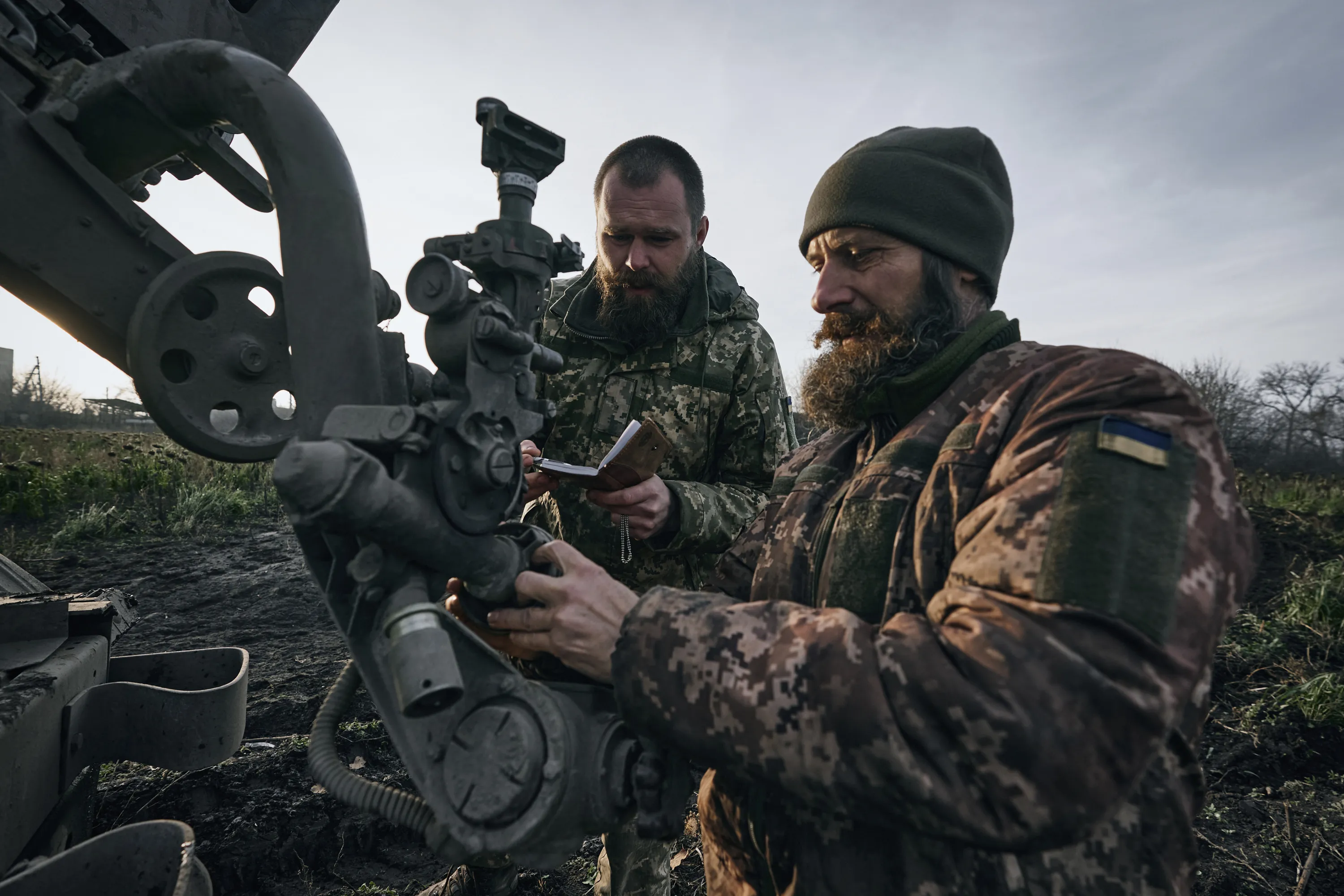 Ukrainian servicemen prepare to fire at Russian positions in the frontline near Bakhmut, Donetsk region, Ukraine, Thursday, November 24, 2022. (Photo by LIBKOS/AP Photo)