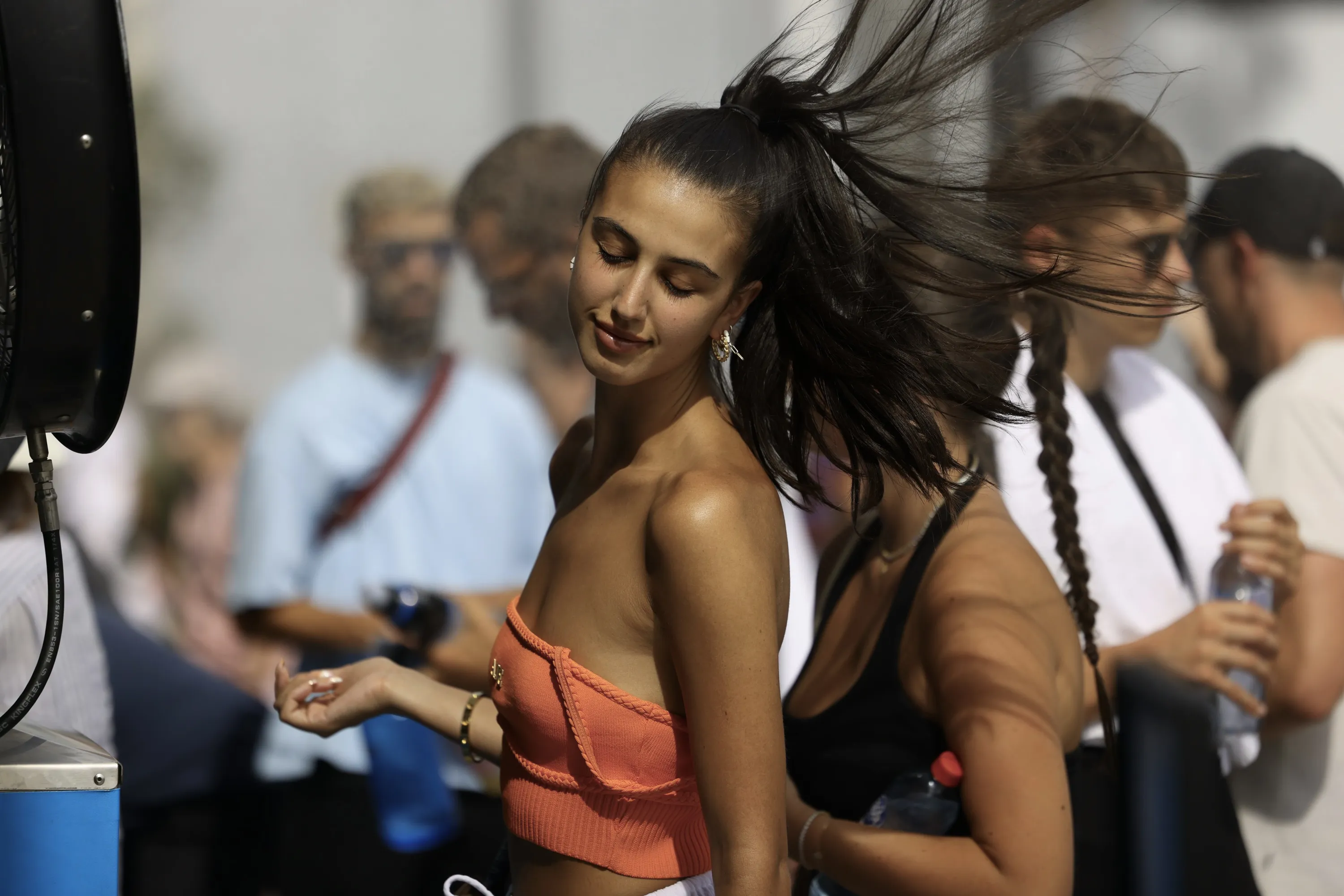 Spectators cool off outside Kia Arena during day two of the 2023 Australian Open at Melbourne Park on January 17, 2023 in Melbourne, Australia. (Photo by Kim Landy/Getty Images)
