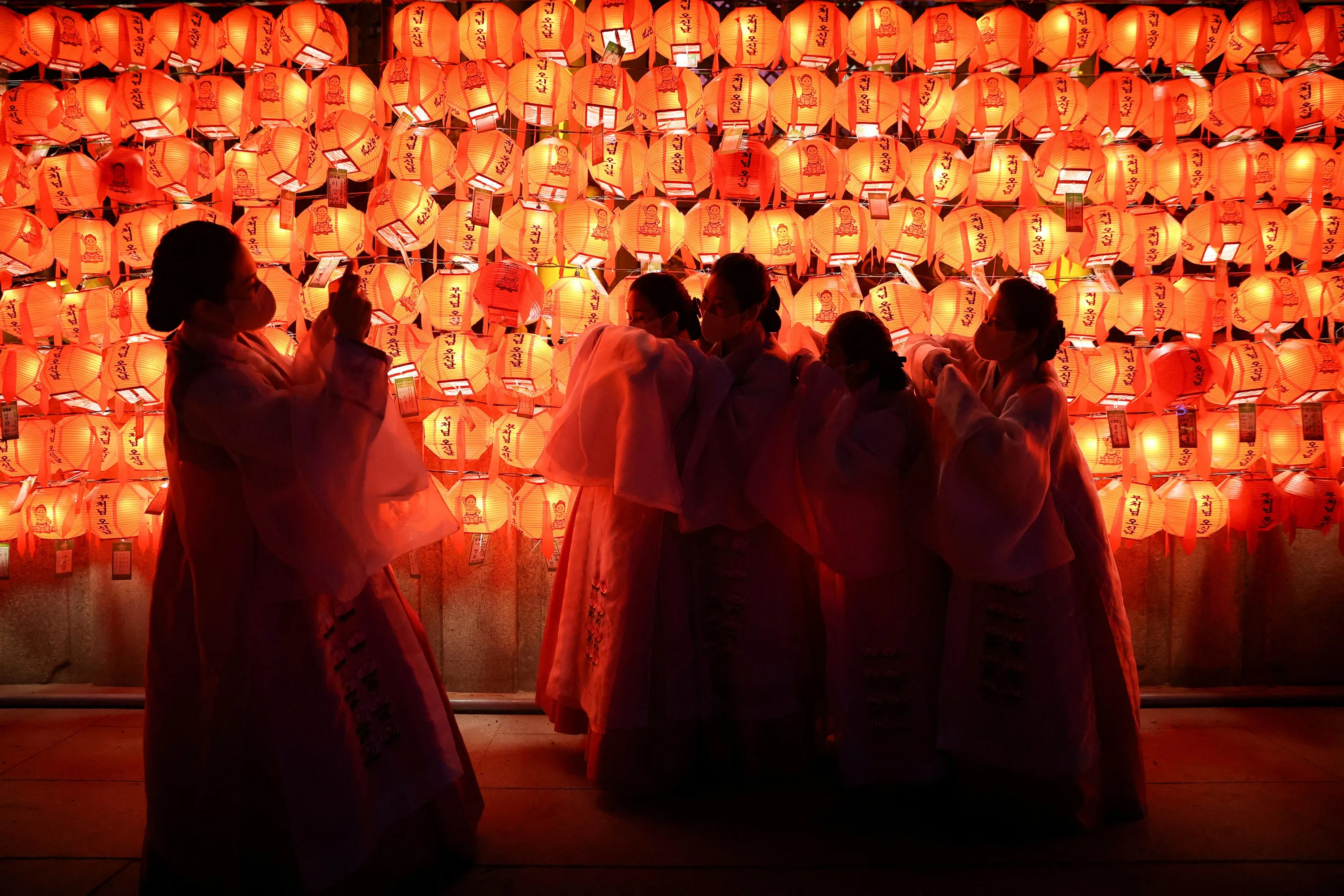 Buddhist faithful take pictures as they celebrate New Year's eve at a temple in Seoul, South Korea on January 1, 2023. (Photo by Kim Hong-Ji/Reuters)