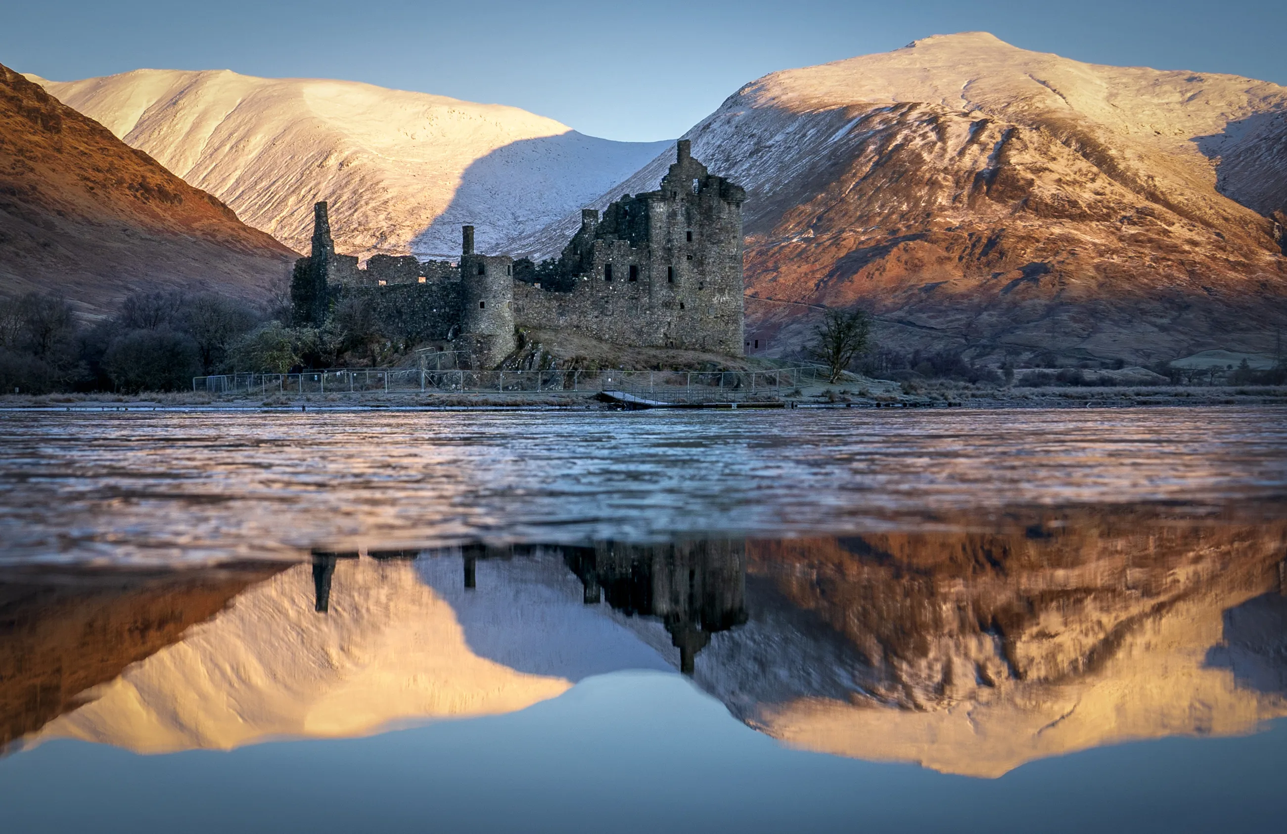 Kilchurn Castle on the banks of a partially frozen Loch Awe, Argyll and Bute on Friday, January 20, 2023 in Scotland. People across many parts of the country are bracing themselves for few days of travel disruption as snow, ice and bitterly cold temperatures grip the nation. (Photo by Jane Barlow/PA Images via Getty Images)