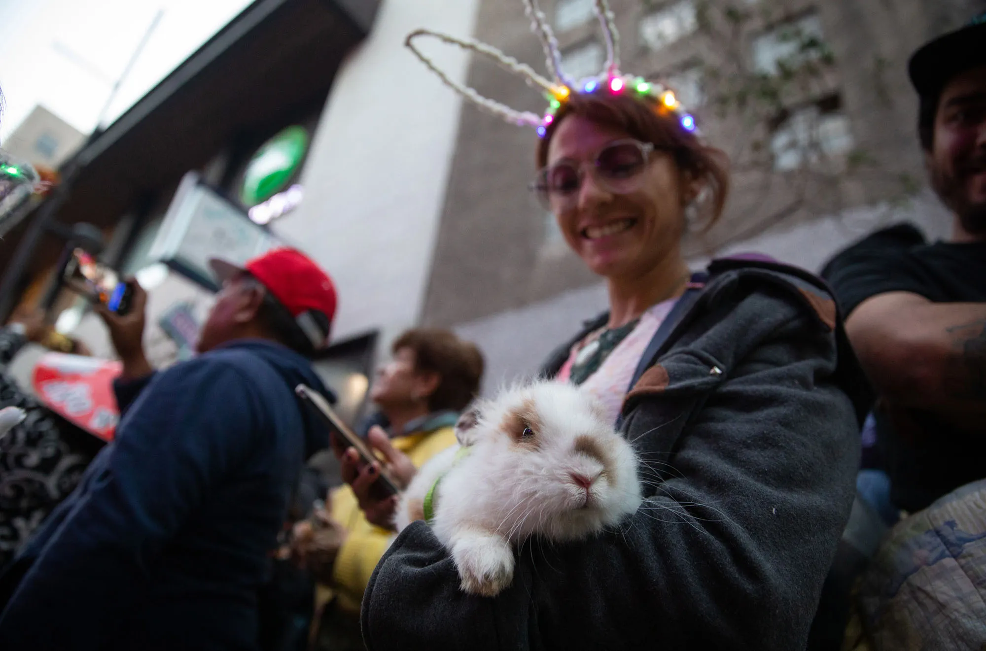 A woman holds a rabbit during the celebration of the Chinese New Year, at the Chinatown, in Mexico City, Mexico on January 22, 2023. This year marks the Year of the Rabbit in the Chinese culture. (Photo by Daniel Cardenas/Anadolu Agency via Getty Images)