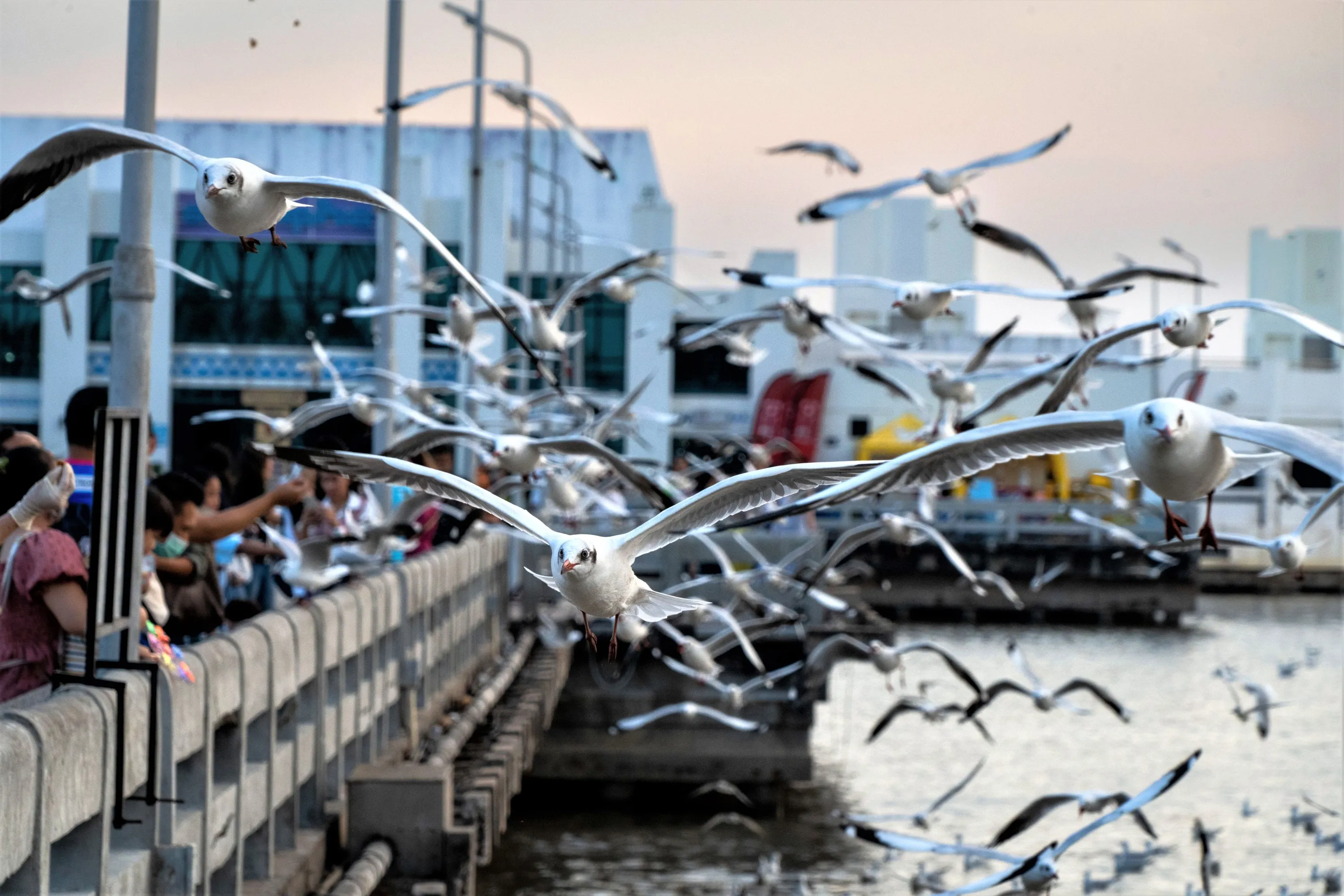 Gulls flock in for snacks at Bang Pu recreational centre near Bangkok, Thailand on January 23, 2023. (Photo by Matt Hunt/Neato/Rex Features/Shutterstock)