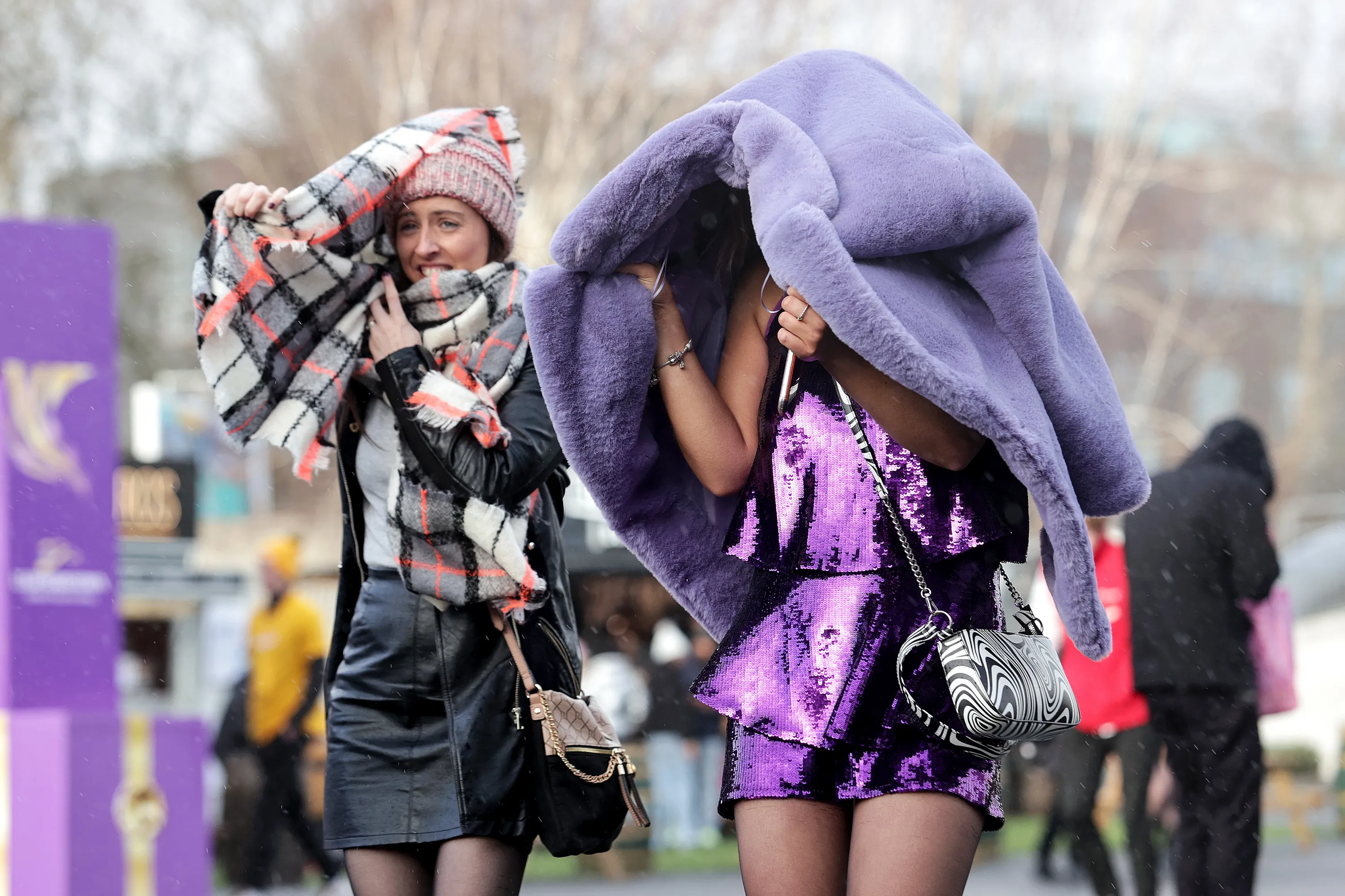 Racegoers brave the conditions at Leopardstown Racecourse during the Christmas Festival on Thursday, December 29, 2022 in Dublin, Ireland. (Photo by Laszlo Geczo/INPHO)