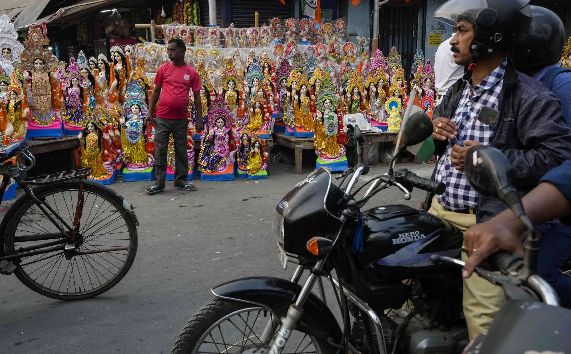 A vendor awaits customers beside a roadside stall selling idols of Saraswati, the Hindu goddess of learning, ahead of its worship scheduled for Thursday in Kolkata, India, Wednesday, January 25, 2023. (Photo by Bikas Das/AP Photo)