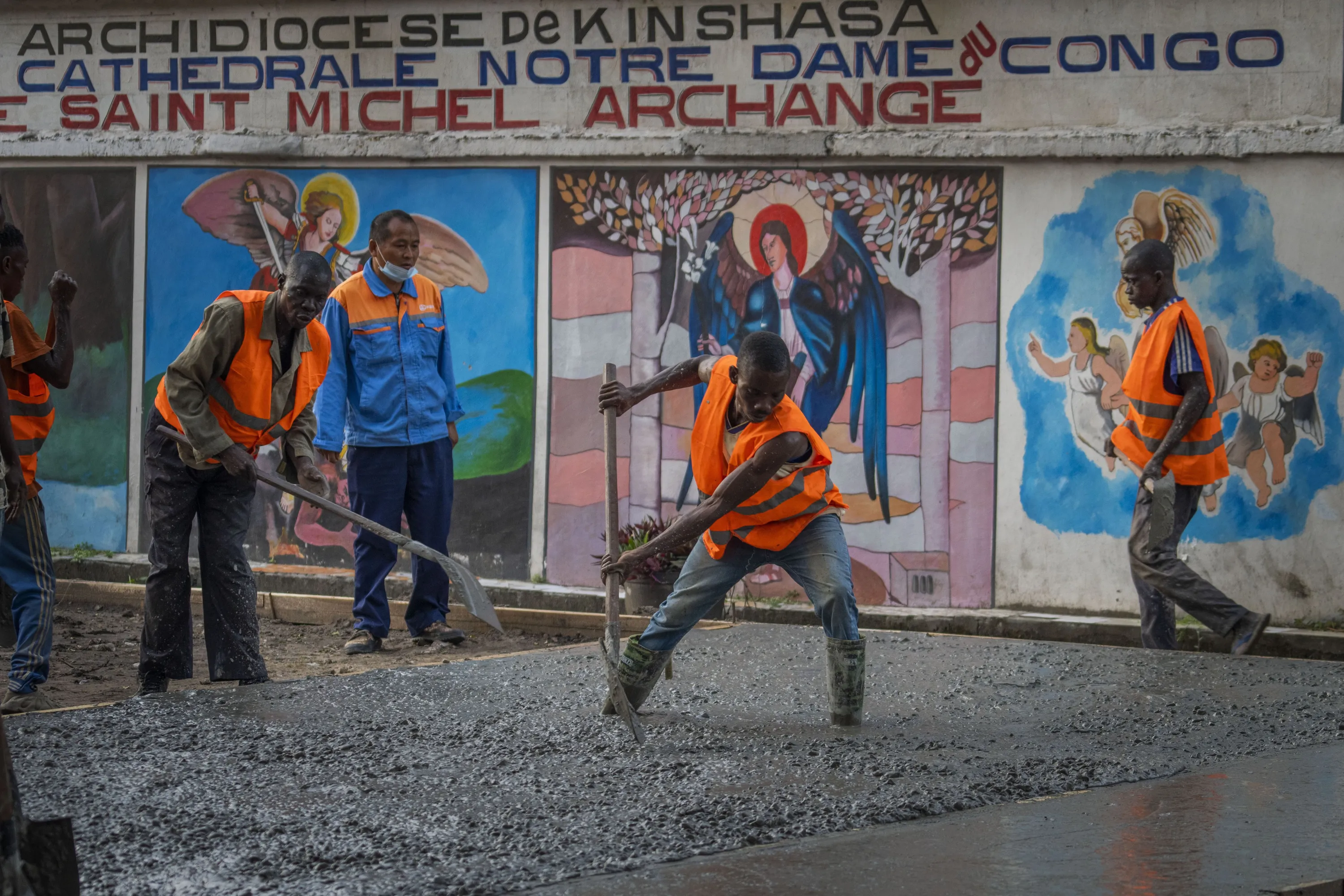 Construction workers lay concrete outside the Cathedral Notre Dame du Congo in Kinshasa, Democratic Republic of the Congo Saturday January 28, 2023. Pope Francis will be in Congo and South Sudan for a six-day trip starting Jan, 31, hoping to bring comfort and encouragement to two countries that have been riven by poverty, conflicts and what he calls a “colonialist mentality” that has exploited Africa for centuries. (Photo by Jerome Delay/AP Photo)