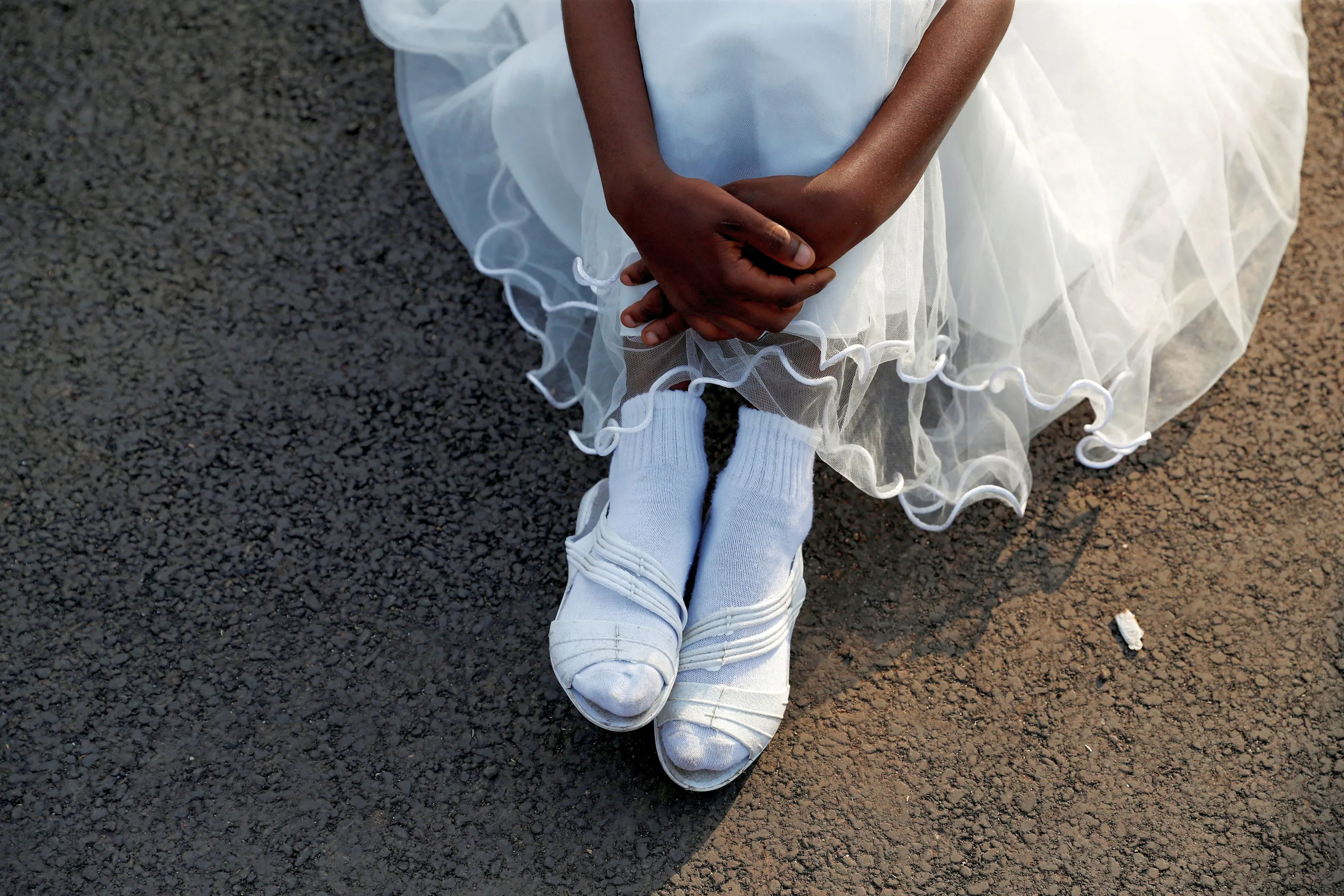 A choir girl sits as Pope Francis celebrates a mass at Ndolo Airport during his apostolic journey, in Kinshasa, Democratic Republic of the Congo on February 1, 2023. (Photo by Yara Nardi/Reuters)